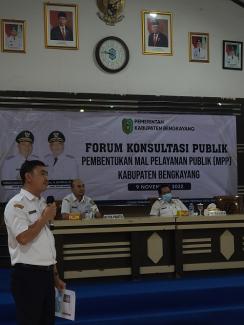 Pada sesi penyampaian materi dijelaskan bahwa masyarakat membutuhkan pelayanan yang cepat, terjangkau, aman, mudah dan nyaman. Hal itu yang menjadi latar belakang perencanaan akan dibangunnya Mall Pelayanan Publik di Kabupaten Bengkayang. Diharapkan masyarakat dapat menyelesaikan pelayanan yang dibutuhkan di satu tempat secara paripurna.