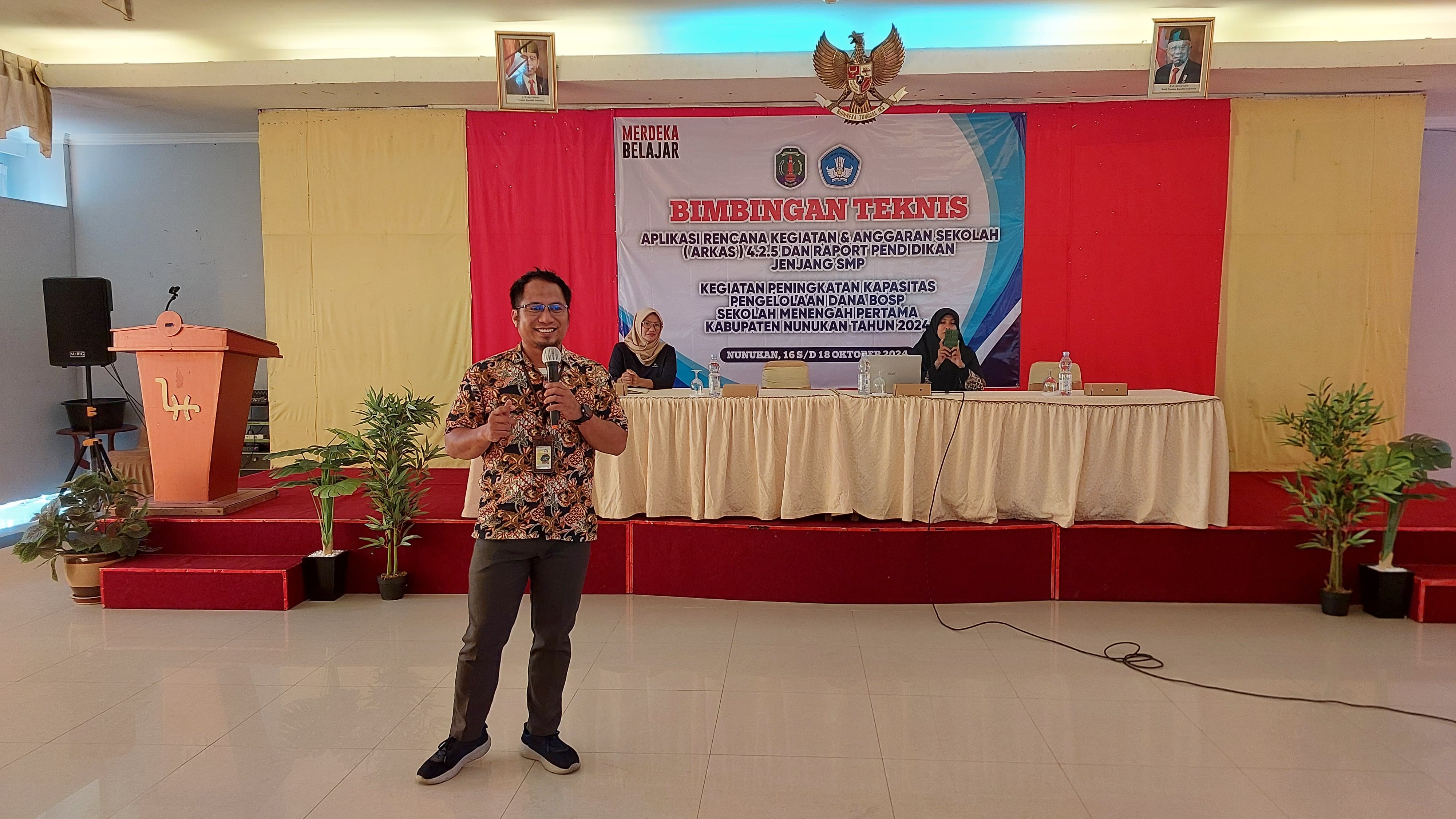 Kepala Kantor Pelayanan, Penyuluhan, dan Konsultasi Perpajakan (KP2KP) Nunukan Mohammad Irfan menghadiri Bimbingan Teknis (Bimtek) Aplikasi Rencana Kegiatan dan Anggaran Sekolah (ARKAS) 4.2.5 dan Raport Pendidikan Jenjang Sekolah Menengah Pertama (SMP) di wilayah Kabupaten Nunukan. Kegiatan dilaksanakan di Ruang Pertemuan Hotel Laura (Jumat, 18/10).