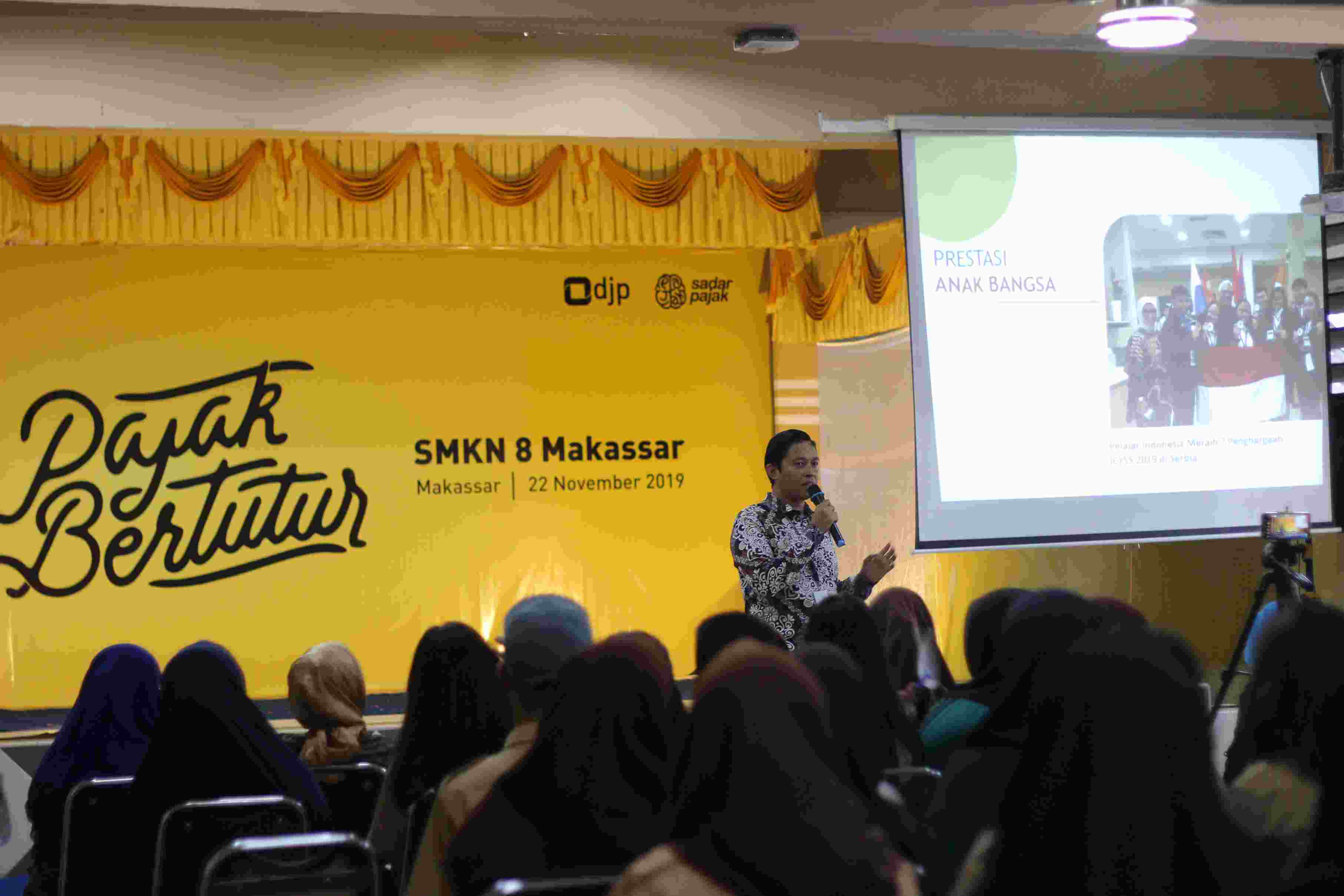Pajak Bertutur yang diselenggarakan secara serentak oleh seluruh instansi vertikal Direktorat Jenderal Pajak di Indonesia ini diikuti oleh pelajar didampingi para guru dari SMKN 8 Makassar.