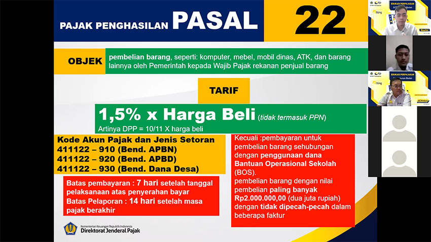 Tim penyuluh perpajakan Kantor Pelayanan, Penyuluhan, dan Konsultasi Perpajakan (KP2KP) Pasangkayu menggelar sosialisasi daring dengan tema Pelaporan SPT Tahunan Badan bagi Wajib Pajak (WP) Badan yang terdaftar sejak 2020 (Senin, 12/4). Sebanyak 62 peserta mengikuti kegiatan yang diadakan di ruang aula KP2KP Pasangkayu ini.