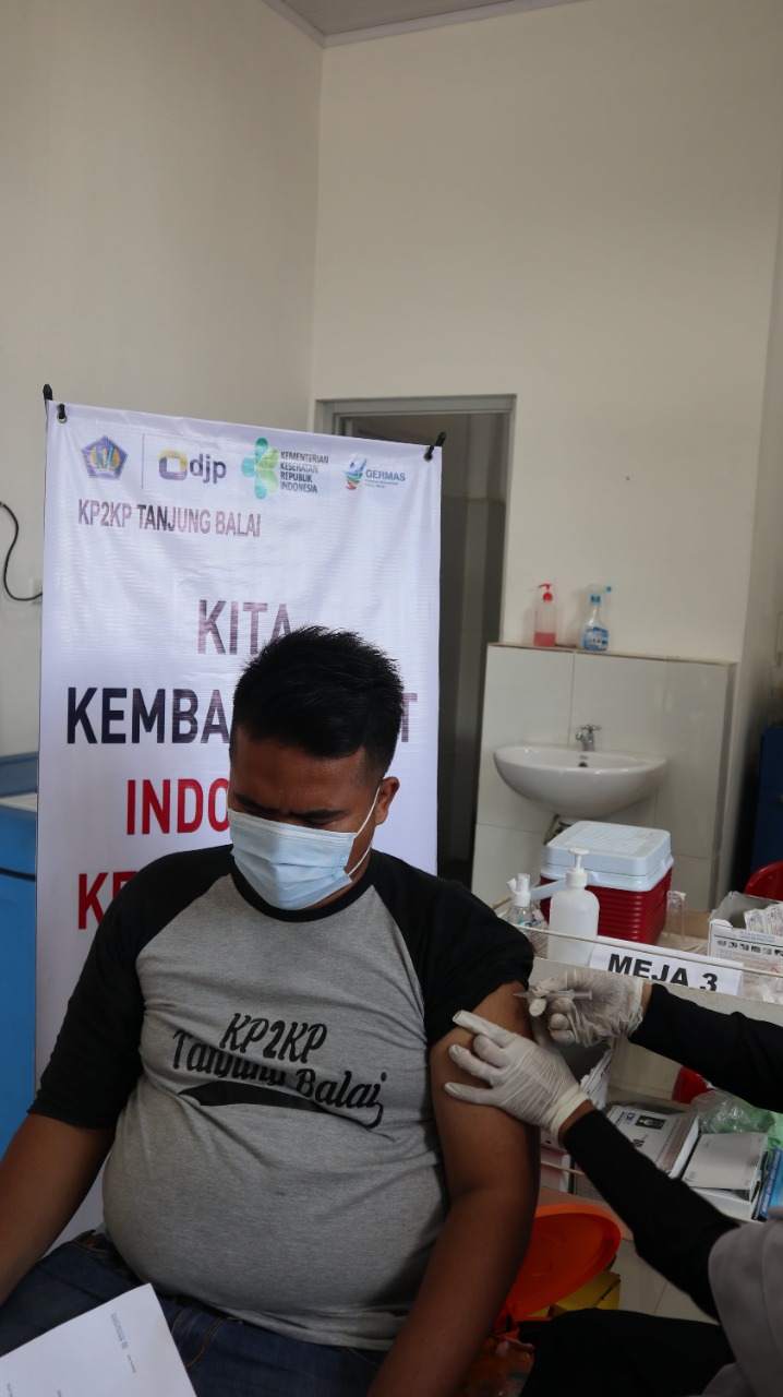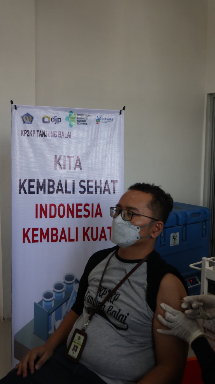 Kantor Pelayanan Penyuluhan dan Konsultasi Perpajakan Tanjung Balai (KP2KP) bersama Dinas Kesehatan Kota Tanjung Balai melaksankan vaksinasi Covid-19 tahap pertama di Puskesmas Mayor Umar Damanik Kota Tanjung Balai, Sumatera Utara (Jumat, 26/3).