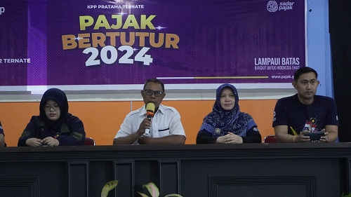 Muhammad Yusuf Razaq, wakil kepala sekolah bagian kesiswaan SMP Negeri 2 Kota Ternate, turut memberikan sambutan dan menyampaikan bahwa mereka berterima kasih karena menjadi salah satu sekolah yang terpilih untuk mendapatkan edukasi perpajakan.