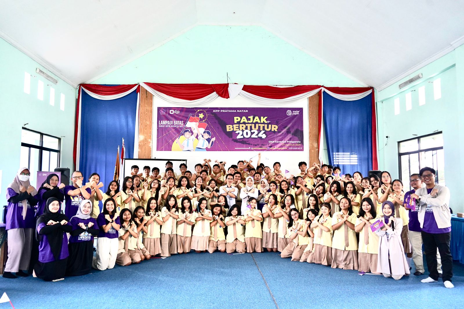 Kantor Pajak Pratama Natar menggelar kegiatan Pajak Bertutur 2024 (Patur 2024) dengan tema "Lampaui Batas, Bangkit Untuk Indonesia Emas" di SMA Xaverius Pringsewu, Jl. Mawar I No.32, Kabupaten Pringsewu (Rabu, 7/8). Kegiatan ini diikuti oleh 80 siswa dari berbagai tingkat kelas dan merupakan bagian dari pelaksanaan serentak di seluruh unit kerja Direktorat Jenderal Pajak (DJP) Kementerian Keuangan Republik Indonesia di seluruh Nusantara.