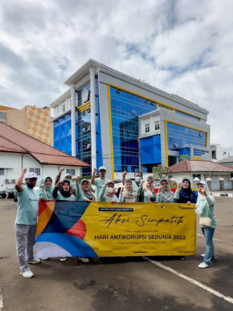 Kantor Wilayah Direktorat Jenderal Pajak (Kanwil DJP) Jawa Barat III, berkolaborasi dengan Kantor Pelayanan Perbendaharaan Negara (KPPN) Bogor dan Kantor Pelayanan Pajak (KPP) Pratama Bogor, menggelar peringatan Hari Antikorupsi Sedunia (Hakordia) yang bertajuk "Integritas Tangguh, Pulih Bertumbuh" di Kota Bogor (Jumat, 9/12).