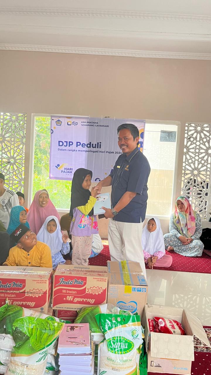 Kantor Pelayanan Pajak (KPP) Pratama Semarang Gayamsari menyelenggarakan kegiatan DJP Peduli dalam rangka menyemarakkan Hari Pajak Tahun 2024 (Rabu, 10/7). Kegiatan tersebut berlokasi di Yayasan Panti Asuhan Yatim Piatu dan Dhuafa Cahaya Shofia, Genuk, Semarang.