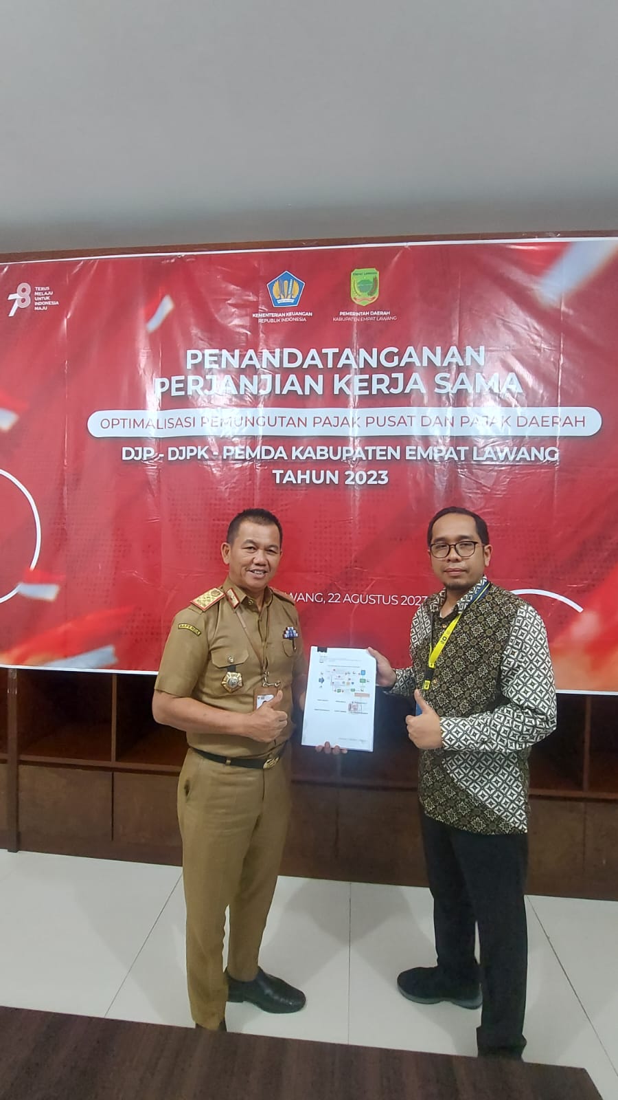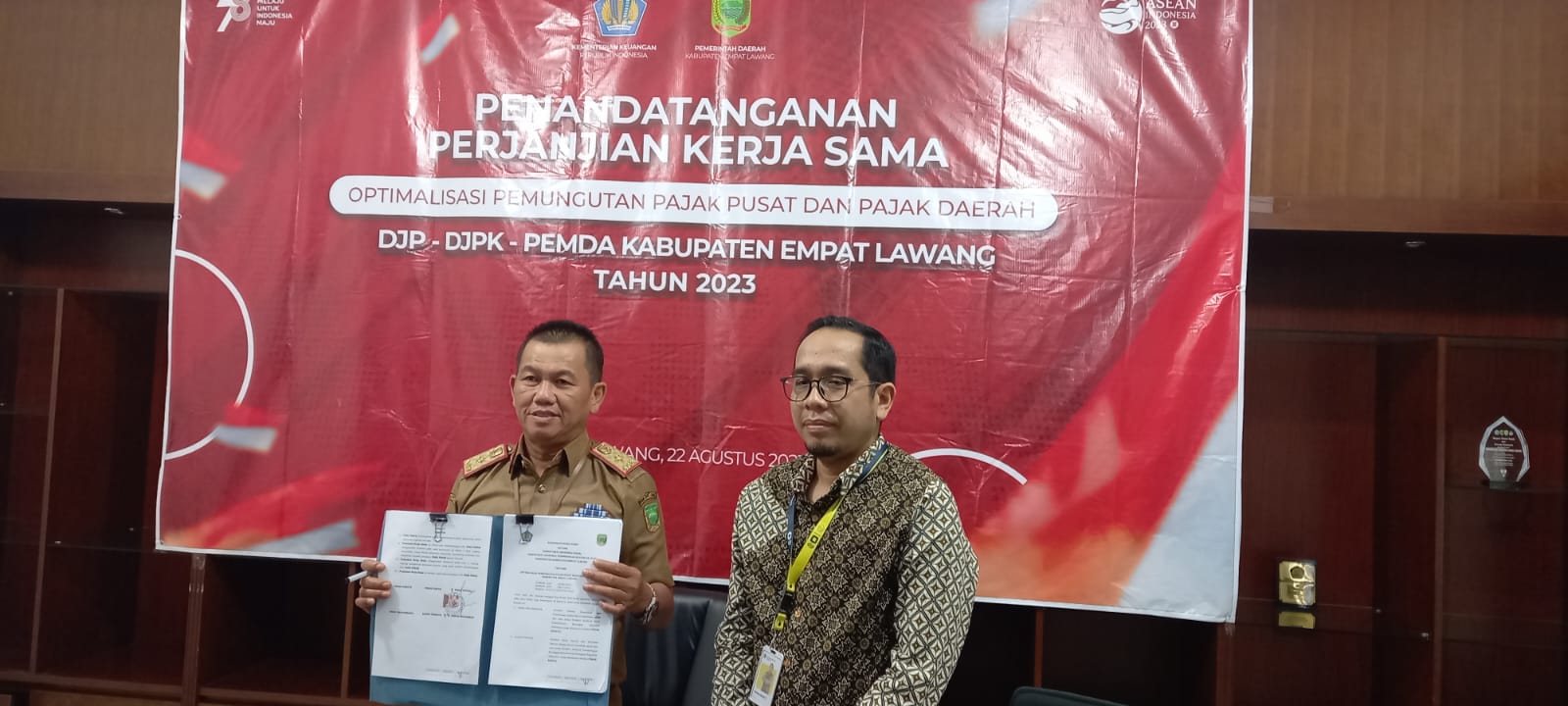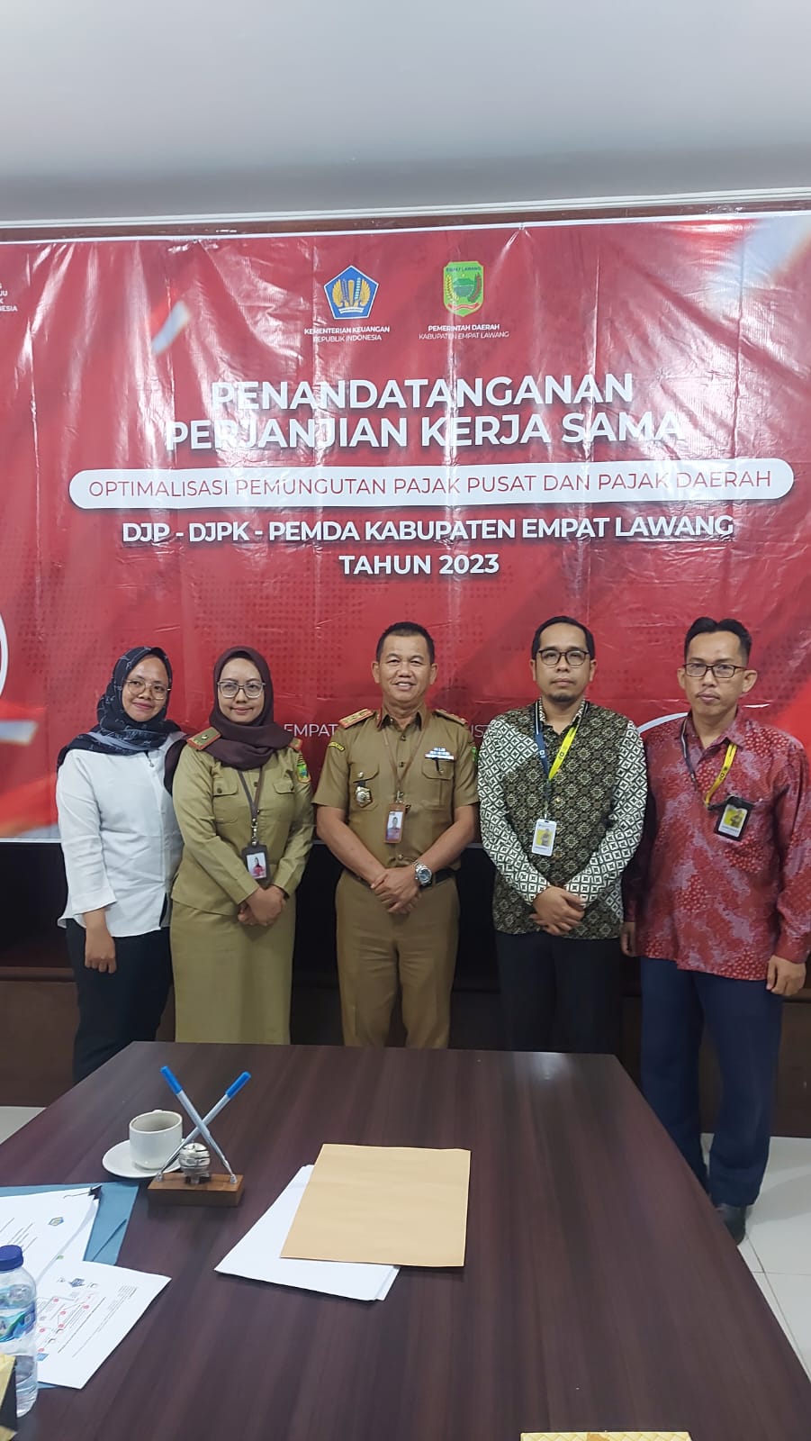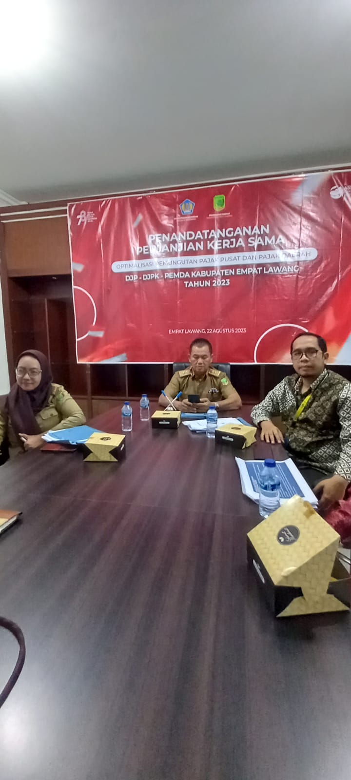 Pemerintah Daerah Kabupaten Empat Lawang mengikuti jalannya seremoni penandatanganan Perjanjian Kerja Sama (PKS) Optimalisasi Pemungutan Pajak Pusat dan Pajak Daerah antara DJP, DJPK, dan Pemerintah Daerah tahap V secara daring di Ruang Rapat Sekretaris Daerah Kabupaten Empat Lawang, Empat Lawang, Sumatera Selatan (Selasa, 22/8).