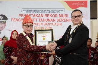 Piagam Penghargaan Museum Rekor Dunia Indonesia nomor 9450/R.MURI/III/2020 tanggal 05 Maret 2020 tentang rekor pengisian SPT serentak tersebut diberikan langsung oleh Awan Rahargo kepada Bupati Banyuasin dan Kepala KPP Pratama Sekayu.