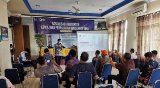 Tim Penyuluh Kantor Pelayanan Pajak (KPP) Pratama Bengkulu Dua memberikan sosialisasi dan bimbingan teknis (bimtek) secara tatap muka dengan materi aspek perpajakan Dana Desa kepada 12 Bendahara Desa dari Kecamatan Pino Raya, Bengkulu Selatan (Kamis, 7/10).