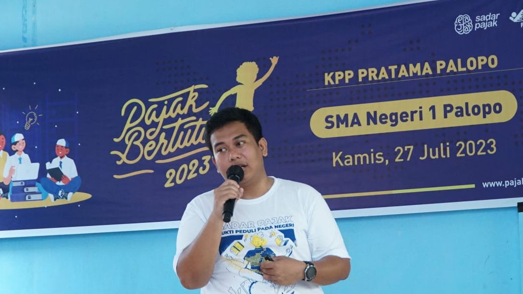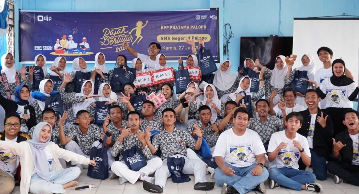 Kantor Pelayanan Pajak (KPP) Pratama Palopo bersama siswa-siswi Sekolah Menengah Atas (SMA) Negeri 1 Palopo mengampanyekan program inklusi kesadaran pajak bagi generasi muda dalam kegiatan Pajak Bertutur 2023, bertempat di ruang kelas SMA Negeri 1 Palopo, Jl. Andi Pangerang Nomor 4, Kec. Wara Utara, Kota Palopo (Kamis, 27/7).