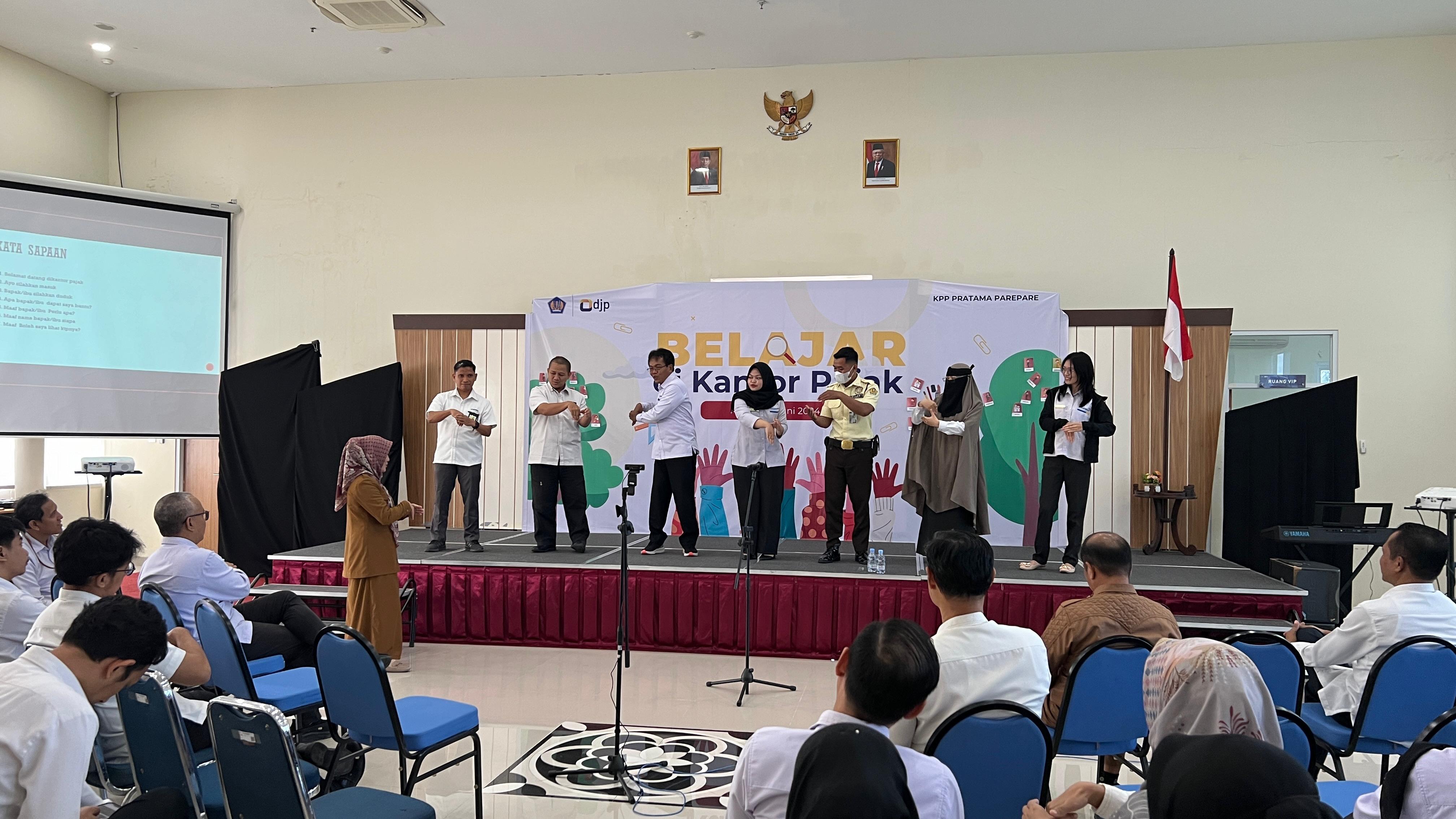 Kantor Pelayanan Pajak (KPP) Pratama Parepare bekerja sama dengan Sekolah Luar Biasa Negeri (SLBN) 1 Parepare menyelenggarakan pelatihan Bahasa Isyarat bagi para pegawai di Ruang Aula KPP Pratama Parepare (Senin, 9/7). Pelatihan ini bertujuan untuk meningkatkan nilai pelayanan KPP Pratama Parepare khususnya pelayanan terhadap wajib pajak disabilitas.