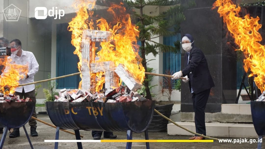 - Rokok yang melanggar ketentuan di bidang cukai dengan jenis pelanggaran rokok tanpa dilekati pita cukai (polos) dan rokok yang dilekati pita cukai bekas sejumlah 12.690.188 (dua belas juta enam ratus Sembilan puluh ribu serratus delapan puluh delapan) batang yang terdiri dari berbagai merk, seperti: Luffman, H Mind, Coffe Stik, Smart, X Bold, H MILD, RNX, dan NAGA 9 Bold.