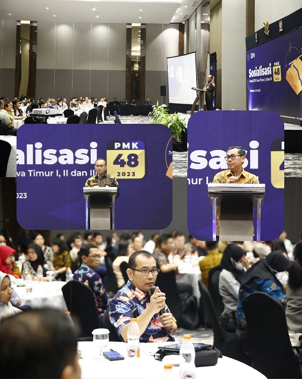 Kanwil DJP Jawa Timur I bersinergi dan kolaborasi dengan Kanwil DJP Jawa Timur II dan Kanwil DJP Jawa Timur III menyelenggarakan kegiatan sosialisasi dan diskusi perpajakan terkait Peraturan Menteri Keuangan (PMK) Nomor 48 Tahun 2023 yang baru saja diberlakukan pada 1 Mei 2023, Surabaya (Kamis, 6/7).