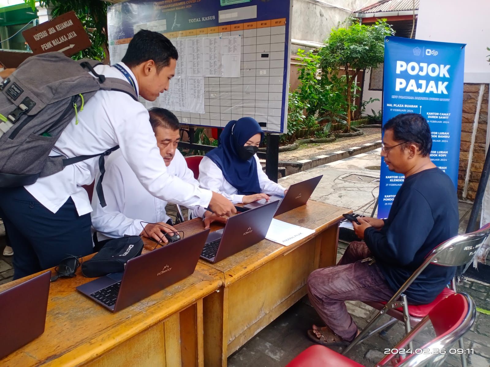 Selain warga sekitar, pegawai kelurahan, anggota PPSU (Pasukan Oren) dan staf puskesmas setempat juga mendatangi Pojok Pajak untuk melaporkan SPT Tahunannya secara online serta berdiskusi dengan petugas Satuan Tugas (Satgas) penerimaan SPT Tahunan. Melalui pertemuan ini, masyarakat dapat bertanya langsung kepada petugas pajak tentang berbagai hal terkait perpajakan yang mungkin mereka hadapi. Kegiatan pojok pajak di Kelurahan Malaka Jaya ini merupakan kegiatan rutin tahunan yang dilakukan oleh KPP Pratama Jakarta Duren Sawit dalam rangka pelaporan SPT Tahunan.