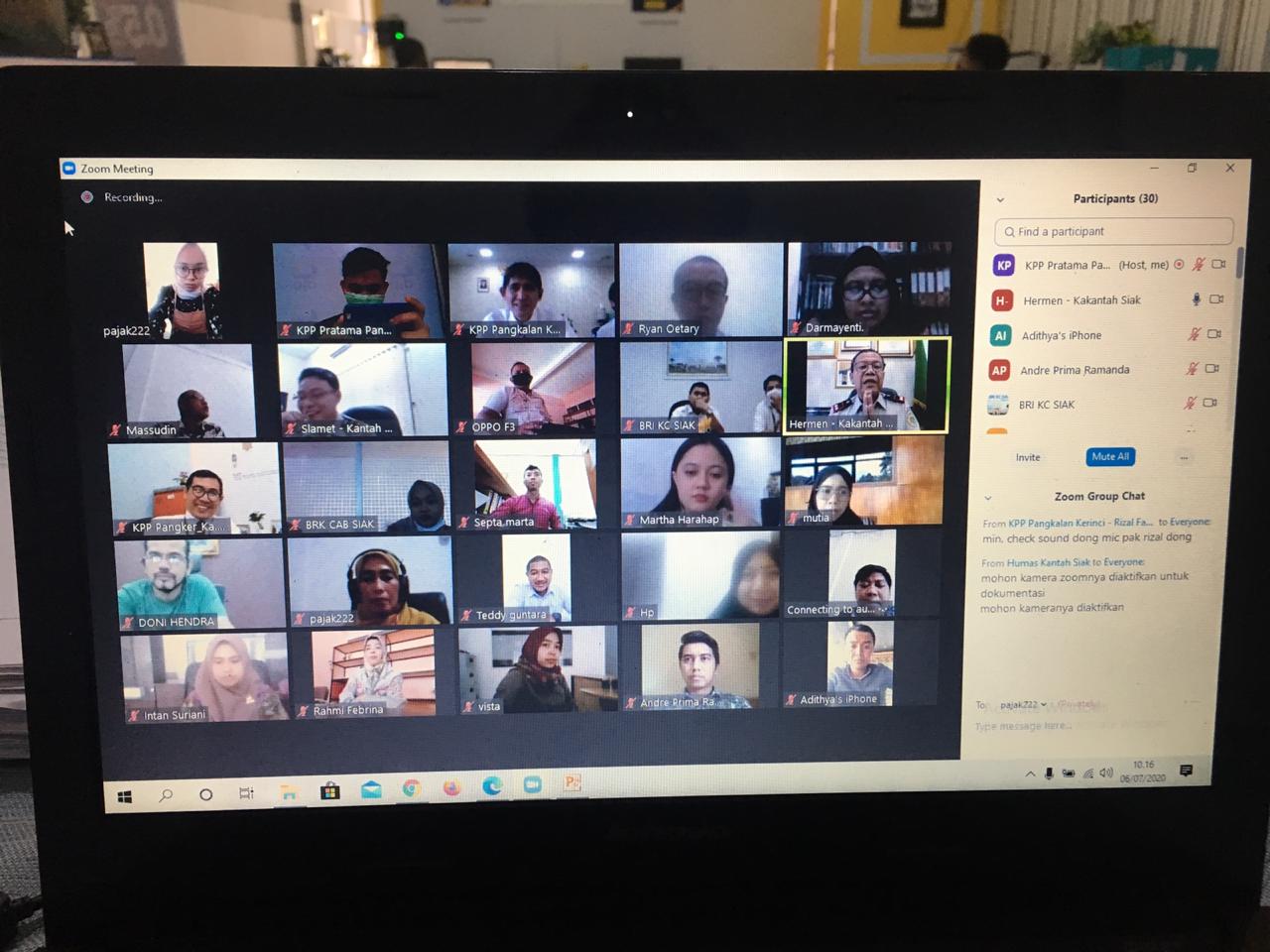 KP2KP Siak Sri Indrapura menyelenggarakan edukasi perpajakan melalui webinar tentang “Validasi PPh Final atas Peralihan Hak atas Tanah dan/atau Bangunan” melalui webinar di Siak (Senin, (6/7). Acara terselenggara berkat sinergi dari KP2KP Siak Sri Indrapura dan Badan Pertanahan Nasional Kab. Siak.