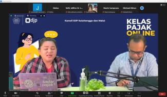 Penyuluh Kantor Wilayah Direktorat Jenderal Pajak Sulawesi Utara, Tengah, Gorontalo, dan Maluku Utara (Kanwil DJP Suluttenggomalut) membuka kelas pajak online via Zoom Meeting (Kamis, 20/7). Berlokasi di Studio Bacarita Kanwil DJP Suluttenggomalut, kelas pajak ini dibuka untuk masyarakat di wilayah Sulawesi Utara, Sulawesi Tengah, Gorontalo, dan Maluku Utara. Dihadir oleh setidaknya 25 peserta, materi yang disampaikan kali ini adalah seputar natura dan/atau kenikmatan.