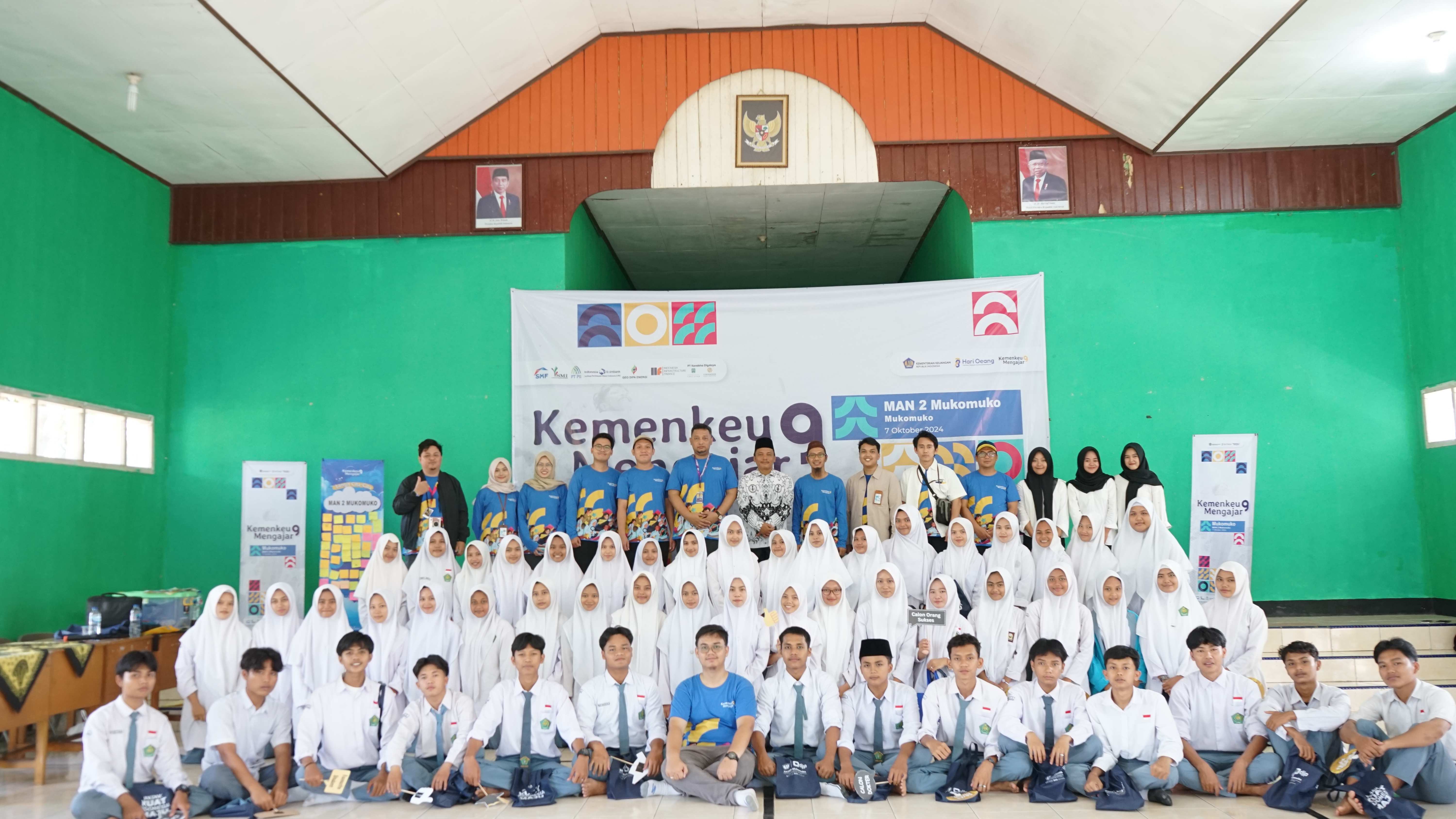 Para siswa dan siswi dari MAN 2 Mukomuko menerima beberapa materi dari relawan pengajar terkait Peran Kementerian Keuangan (Kemenkeu) dalam mengelola Dana Anggaran Pendapatan dan Belanja Negara (APBN); peran dan manfaat APBN dalam kehidupan sehari-hari seperti pembiayaan pembangunan fasilitas umum dan berbagai Proyek Strategis Nasional; Pengenalan profesi yang ada di Kementerian Keuangan; serta cerita inspirasi untuk menjaga semangat belajar para siswa.