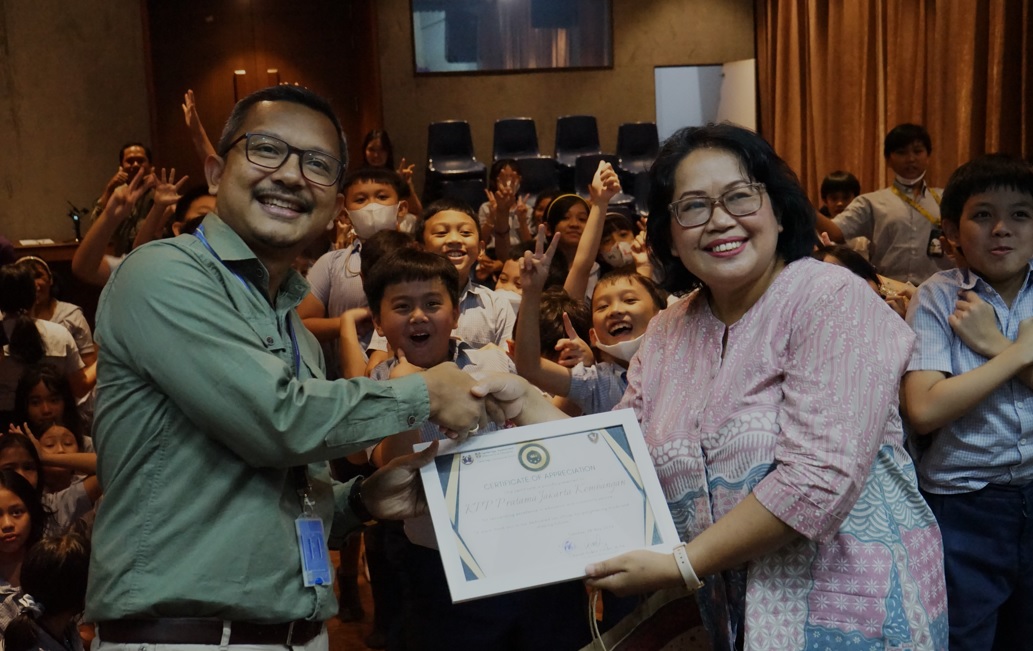 Kantor Pelayanan Perpajakan (KPP) Pratama Jakarta Kembangan bersama Sekolah Permata Harapan Simprug menyelenggarakan kegiatan Tax Goes To School (TGTS) di Kembangan, Kota Jakarta Barat (Selasa, 28/5).
