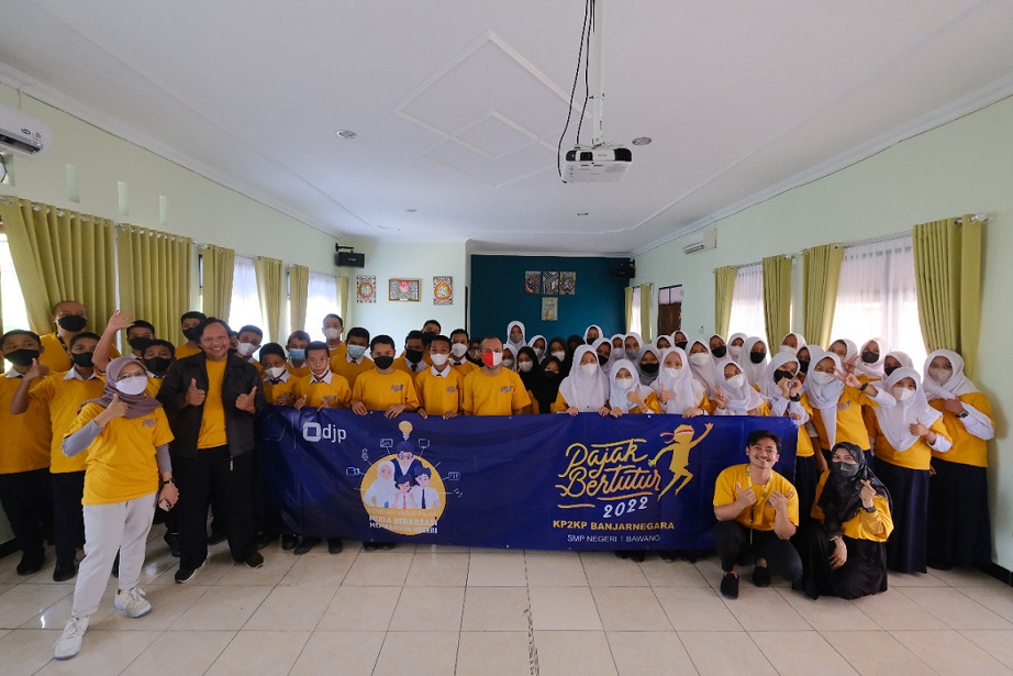 Kantor Pelayanan Pajak (KPP) Pratama Purbalingga dan Kantor Pelayanan, Penyuluhan, dan Konsultasi Perpajakan (KP2KP) Banjarnegara menyelenggarakan kegiatan Pajak Bertutur 2022 di aula SMP Negeri 1 Bawang Banjarnegara (Kamis, 18/8). Kegiatan ini diikuti oleh 48 siswa SMP Negeri 1 Bawang yang merupakan perwakilan setiap kelas yang terdiri dari kelas 7, 8, dan 9.