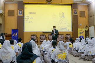 Penyuluh dari KPP Pratama Jepara, Sakha Maajid menjelaskan tentang pentingnya pajak bagi suatu negara serta peran serta yang dapat dilakukan oleh siswa siswi SMA Negeri 1 Jepara untuk ikut berkontribusi bagi negara antara lain dengan giat belajar, mengikuti upacara bendera dan mentaati tata tertib sekolah.