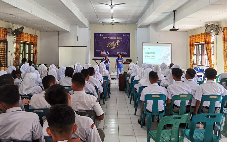Kantor Pelayanan Pajak (KPP) Pratama Binjai menyelenggarakan kegiatan Pajak Bertutur Tahun 2023 dengan tema "Sadar Pajak, Bukti Peduli Pada Negeri" di Aula SMA Negeri 2 Binjai (Kamis, 27/7). Tidak hanya diikuti oleh 75 siswa dan guru di SMA Negeri 2 Binjai, Pajak Bertutur diselenggarakan serentak di seluruh Indonesia oleh Direktorat Jenderal Pajak sebagai rangkaian kegiatan Hari Pajak Tahun 2023.