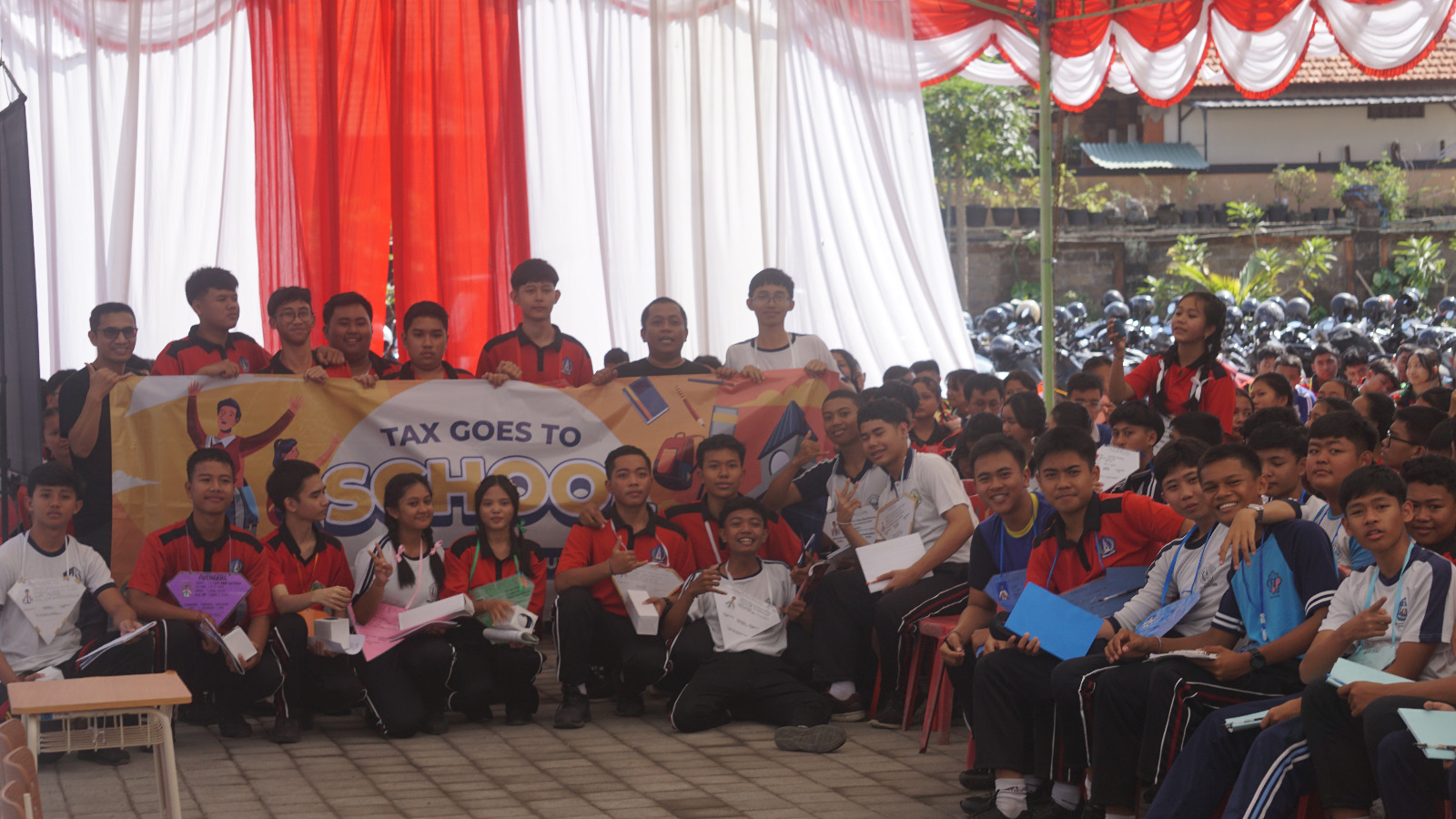 Acara TGTS ditutup dengan foto bersama. Menurut petugas pajak, dengan adanya kegiatan TGTS, para siswa diharapkan dapat memahami peran penting pajak dan dapat tumbuh menjadi generasi sadar pajak yang berdedikasi pada negeri.