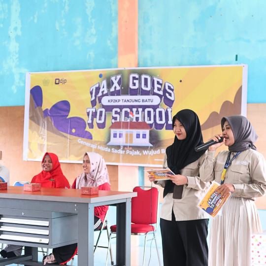 Tim Penyuluh Pajak Kantor Pelayanan, Penyuluhan, dan Konsultasi Perpajakan (KP2KP) Tanjung Batu beserta Kantor Pelayanan Pajak (KPP) Pratama Tanjung Balai Karimun menyelenggarakan kegiatan Tax Goes to School (TGTS) dengan tema “Generasi Muda Sadar Pajak, Bukti Peduli pada Negeri”. TGTS yang diikuti oleh 51 murid kelas XI serta beberapa guru sebagai pendamping ini dilaksanakan di Aula Sekolah Menengah Kejuruan (SMK) Negeri 1 Moro, Kecamatan Moro, Kabupaten Karimun, Kepulauan Riau (Kamis, 30/5).