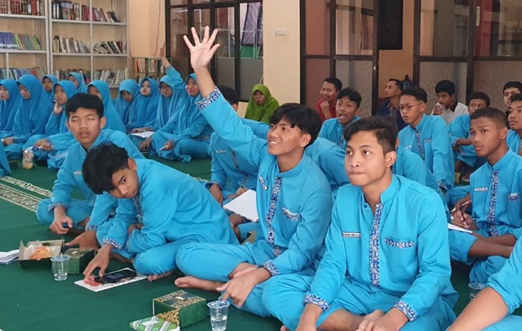 Adib Fauzan Ahmad Siswa Kelas X Sekolah Menengah Kejuruan Islam Terpadu (SMK IT) Al Huda Wonogiri bertanya mengenai pembayaran pajak dalam acara Tax Goes To School (TGTS) yang diselenggarakan Kantor Pelayanan, Penyuluhan, dan Konsultasi Perpajakan (KP2KP) Wonogiri di SMK IT Al Huda Wonogiri (Kamis, 13/10).