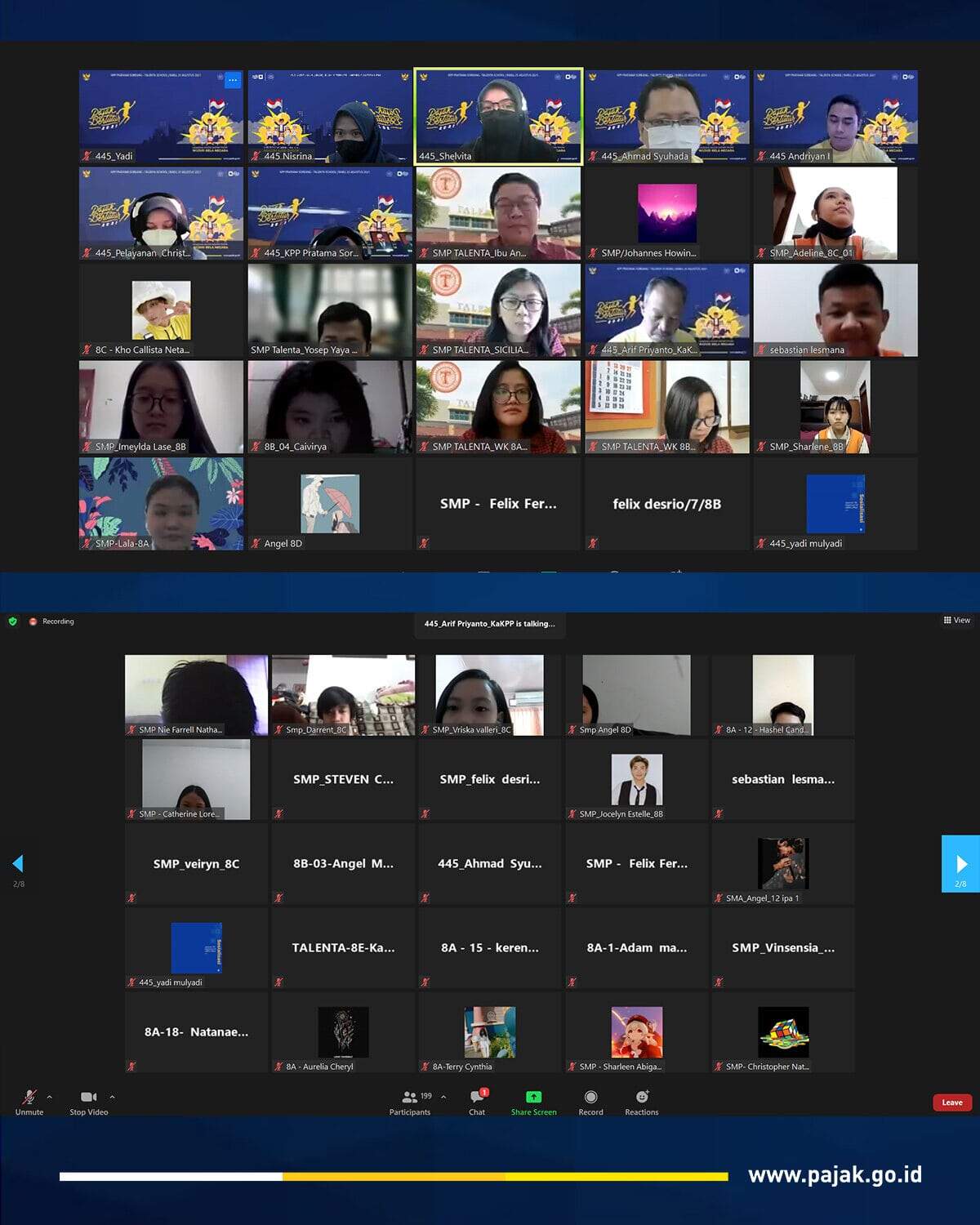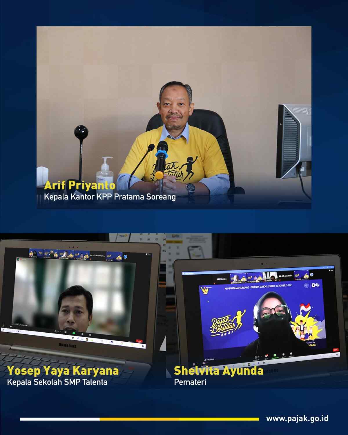 Kantor Pelayanan Pajak (KPP) Pratama Soreang menyelenggarakan kegiatan Pajak Bertutur 2021 secara daring melalui aplikasi Zoom Meeting kepada pelajar SMP-SMA Talenta School, di jalan Raya Cimareme, Bandung Barat (Rabu, 25/8).