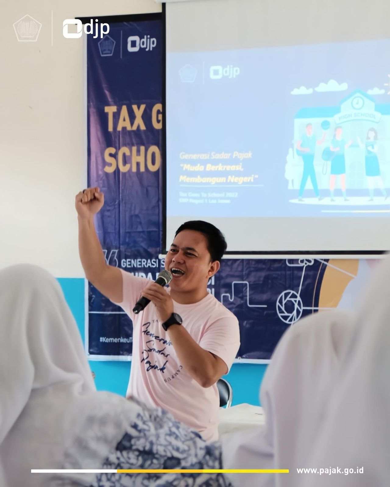 Kantor Pelayanan Perpajakan (KPP) Pratama Tenggarong mengadakan kegiatan Tax Goes To School 2022 di Sekolah Menengah Pertama Negeri (SMPN) 1 Loa Janan, Kecamatan Loa Janan, Kabupaten Kutai Kartanegara (Kamis, 25/8). Kegiatan ini dilaksanakan secara luring dengan tetap menerapkan protokol kesehatan yang berlaku.