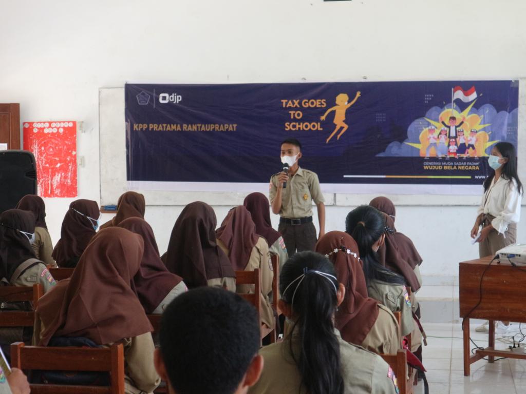 Kantor Pelayanan Pajak (KPP) Pratama Rantau Prapat mengadakan Tax Goes To School (TGTS) kepada para siswa Sekolah Menengah Atas (SMA) Negeri 3 Rantau Utara di Ruang Kelas SMA Negeri 3 Rantau Utara di Kelurahan Padang Matinggi, Kecamatan Rantau Utara, Kabupaten Labuhan Batu, Sumatera Utara (Jumat, 5/11). Kegiatan ini merupakan kegiatan Tax Goes To School yang kedua yang diselenggarakan oleh KPP Pratama Rantau Prapat tahun 2021 ini.