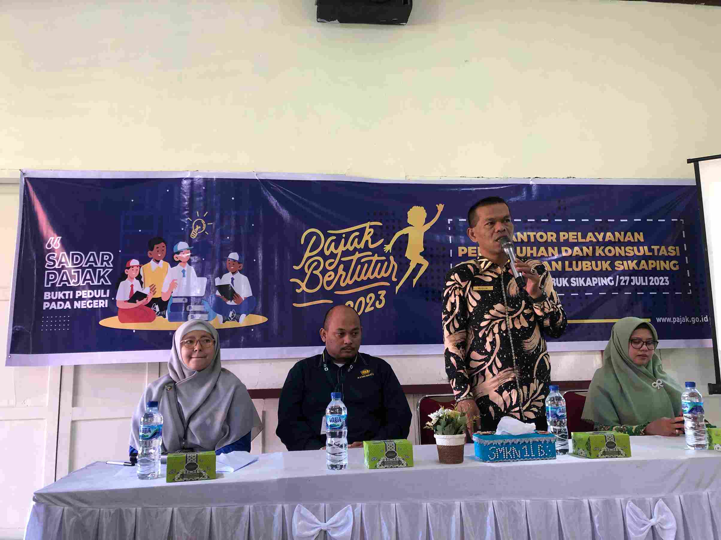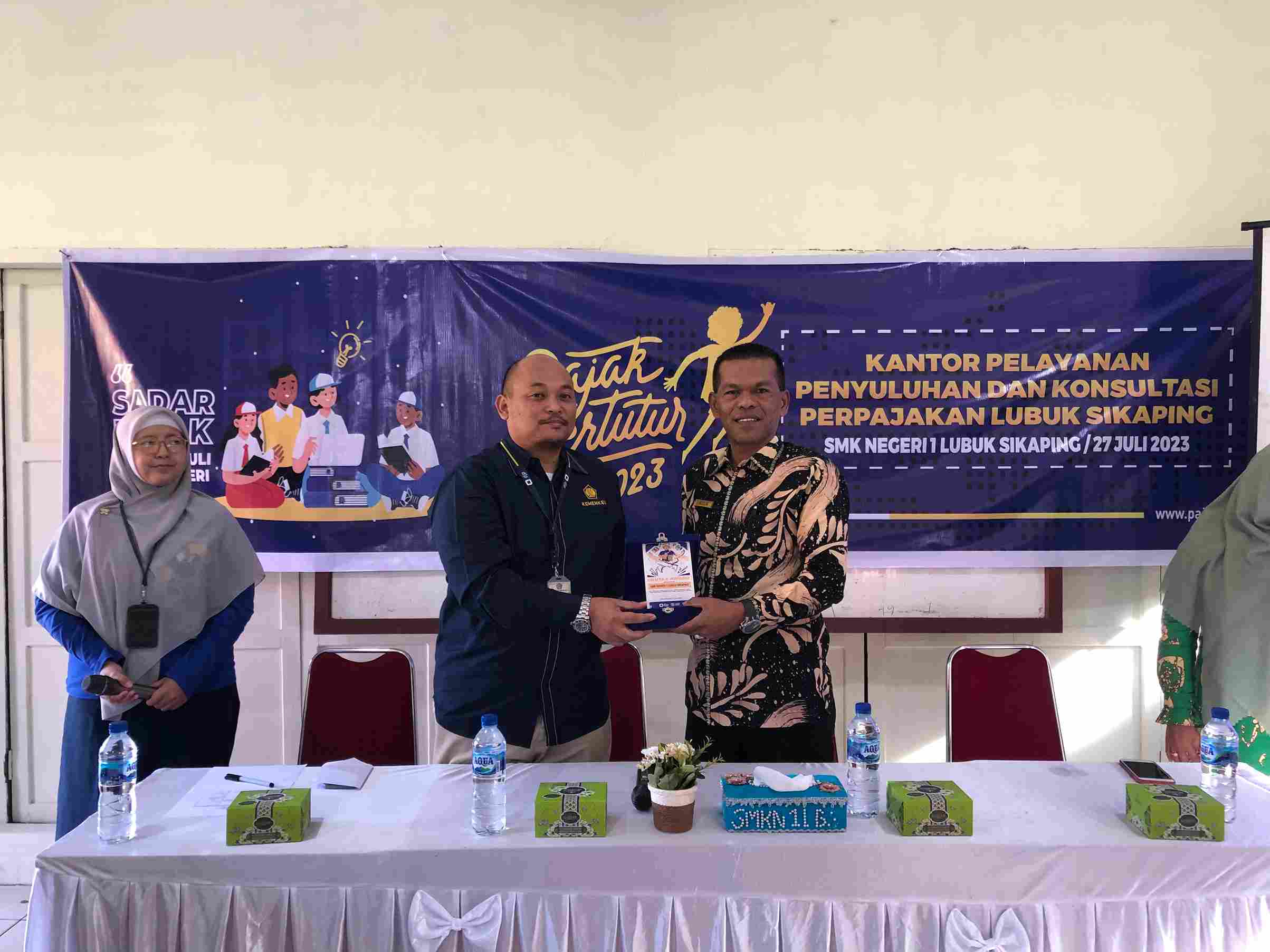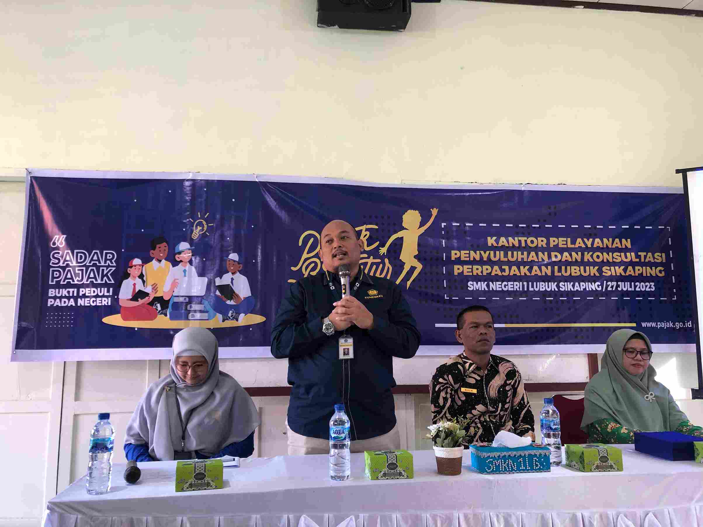 Kantor Pelayanan, Penyuluhan, dan Konsultasi Perpajakan (KP2KP) Lubuk Sikaping mengadakan Pajak Bertutur 2023 di Sekolah Menengah Kejuruan (SMKN) 1 Lubuk Sikaping, Kab. Pasaman (Kamis, 27/07).