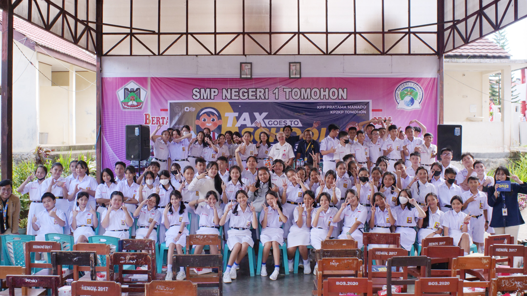 Kantor Pelayanan Penyuluhan dan Konsultasi Perpajakan (KP2KP) Tomohon bersama dengan Kantor Pajak Pratama (KPP) Manado menyelenggarakan kegiatan Tax Goes to School (TGTS) yang diikuti oleh 84 siswa-siswi SMP Negeri 1 Tomohon (Rabu, 26/7). Bertempat di Aula SMP Negeri 1 Tomohon, Sulawesi Utara, kegiatan ini dibuka oleh Kepala Sekolah Dra. Lilly A.H. Mangoendap, M.Pd. Kegiatan berlangsung selama kurang lebih dua jam, mulai pukul 08.00 WITA.