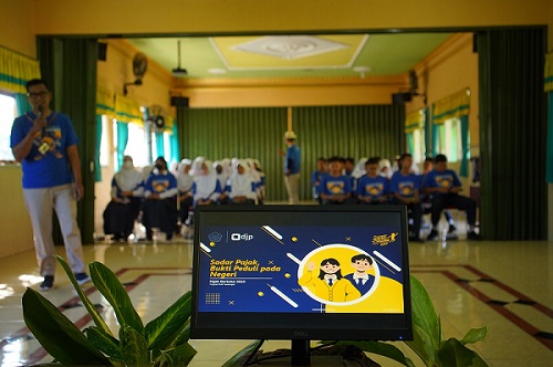 Kantor Pelayanan Pajak (KPP) Pratama Cilacap melaksanakan kegiatan Pajak Bertutur 2023 secara langsung bersama siswa SMP Negeri 2 Cilacap dengan tema “Sadar Pajak, Bukti Peduli Pada Negeri” (Kamis, 27/7).