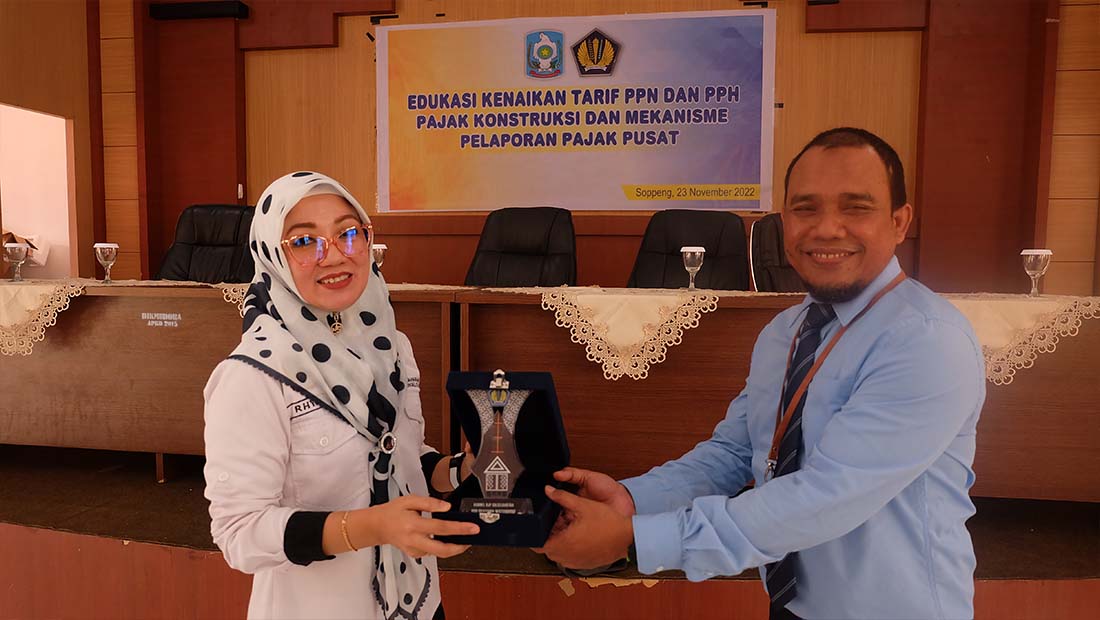 Kantor Pelayanan, Penyuluhan, dan Konsultasi Perpajakan (KP2KP) Watansoppeng bersama Kantor Pelayanan Pajak (KPP) Pratama Watampone menggelar kegiatan sosialisasi Peraturan Menteri Keuangan (PMK) Nomor 59/PMK.03/2022 dan Surat Pemberitahuan (SPT) Masa unifikasi instansi pemerintah di Aula Kantor Dinas Pendidikan Kabupaten Soppeng (Rabu, 23/11).