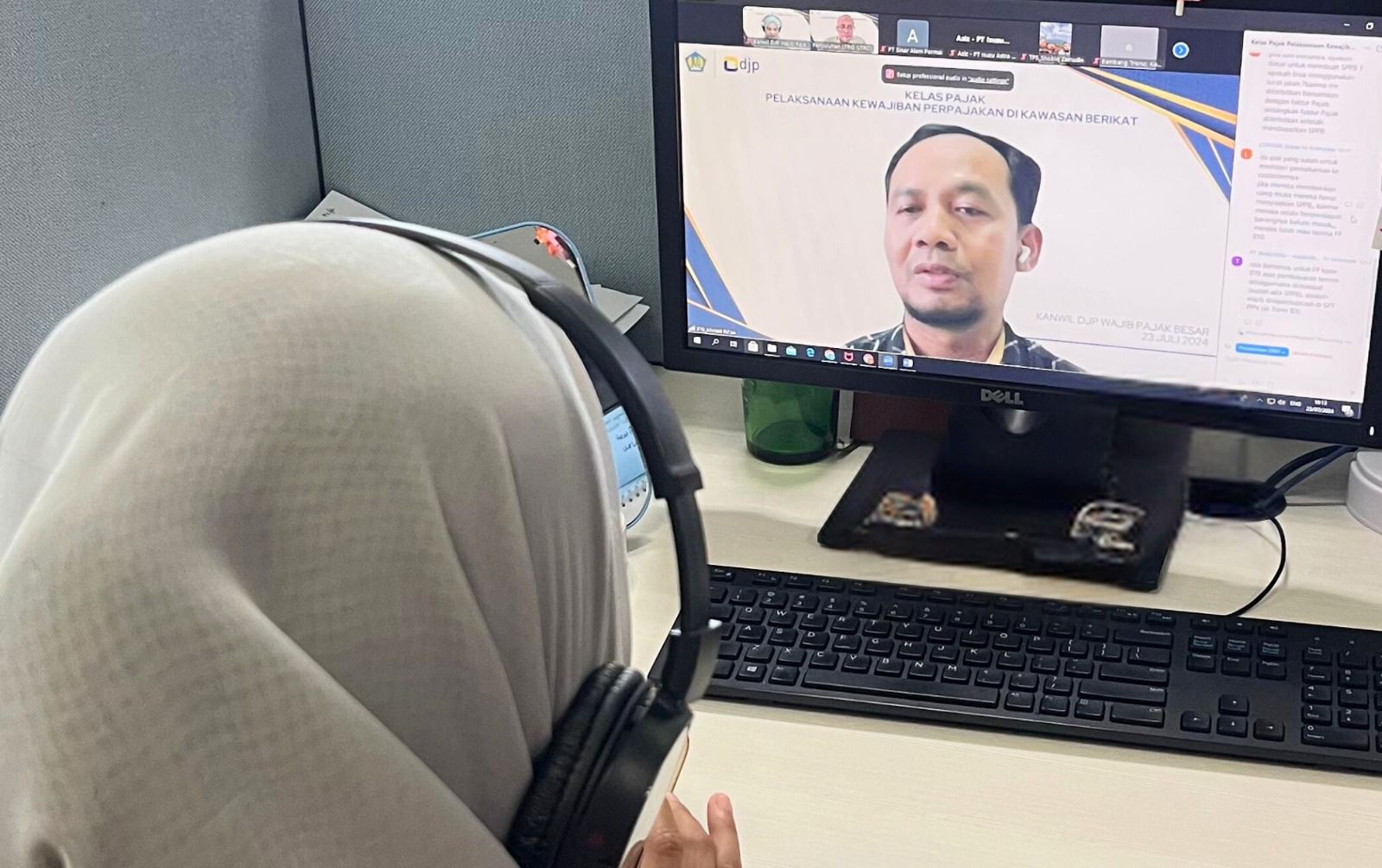 Kantor Wilayah Direktorat Jenderal Pajak Wajib Pajak Besar (Kanwil DJP WP Besar) selenggarakan kelas pajak daring, Jakarta (Selasa, 23/7). Tim penyuluh pajak selaku narasumber menyosialisasikan aturan terkait ketentuan perpajakan di Kawasan Berikat.