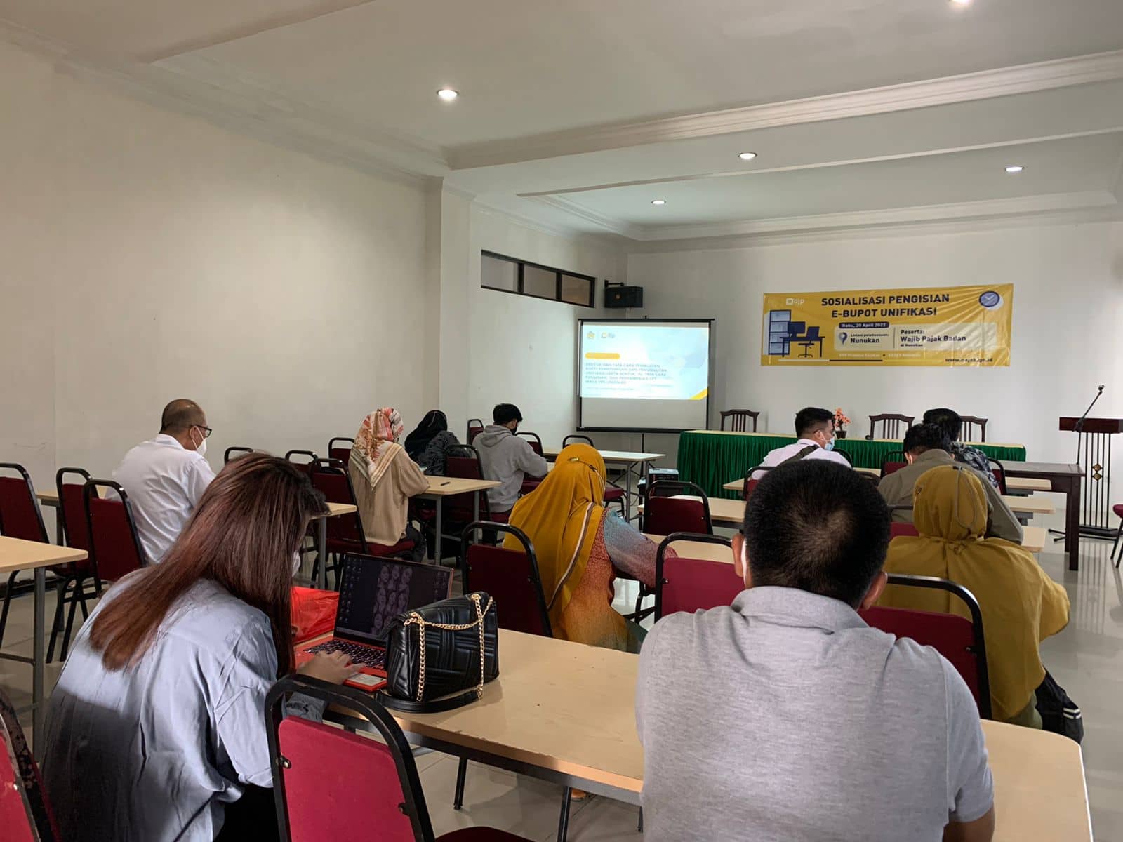 Kantor Pelayanan Pajak (KPP) Pratama Tarakan bersama Kantor Pelayanan, Penyuluhan, dan Konsultasi Perpajakan (KP2KP) Nunukan mengundang bendahara perusahaan di Kabupaten Nunukan dalam Sosialisasi e-Bupot Unifikasi di Hotel Lenfin, Kab. Nunukan (Rabu, 10/04).