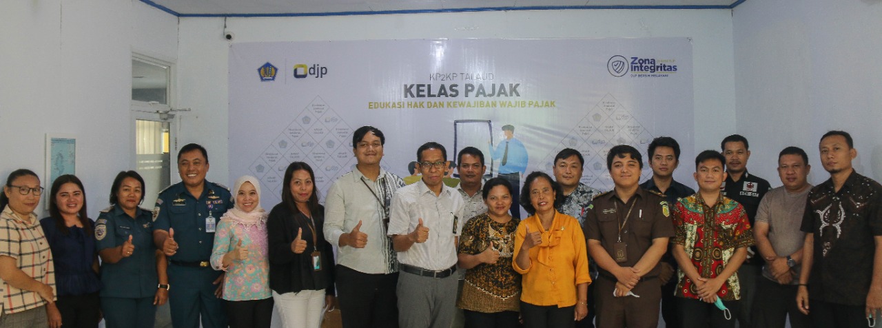 Kantor Pelayanan, Penyuluhan, dan Konsultasi Perpajakan (KP2KP) Talaud melakukan kegiatan sosialisasi perpajakan kepada Bendahara Instansi Vertikal Kabupaten Kepulauan Talaud dalam rangka sosialisasi ketentuan perpajakan terbaru yang berkaitan dengan hak dan kewajiban bendahara. Kunjungan tersebut dilakukan di Aula KP2KP Talaud di Kelurahan Melonguane, Kecamatan Melonguane, Kabupaten Kabupaten Kepulauan Talaud (Kamis, 23/6).