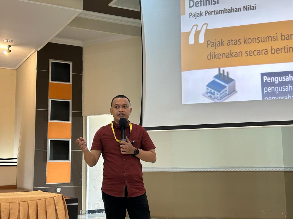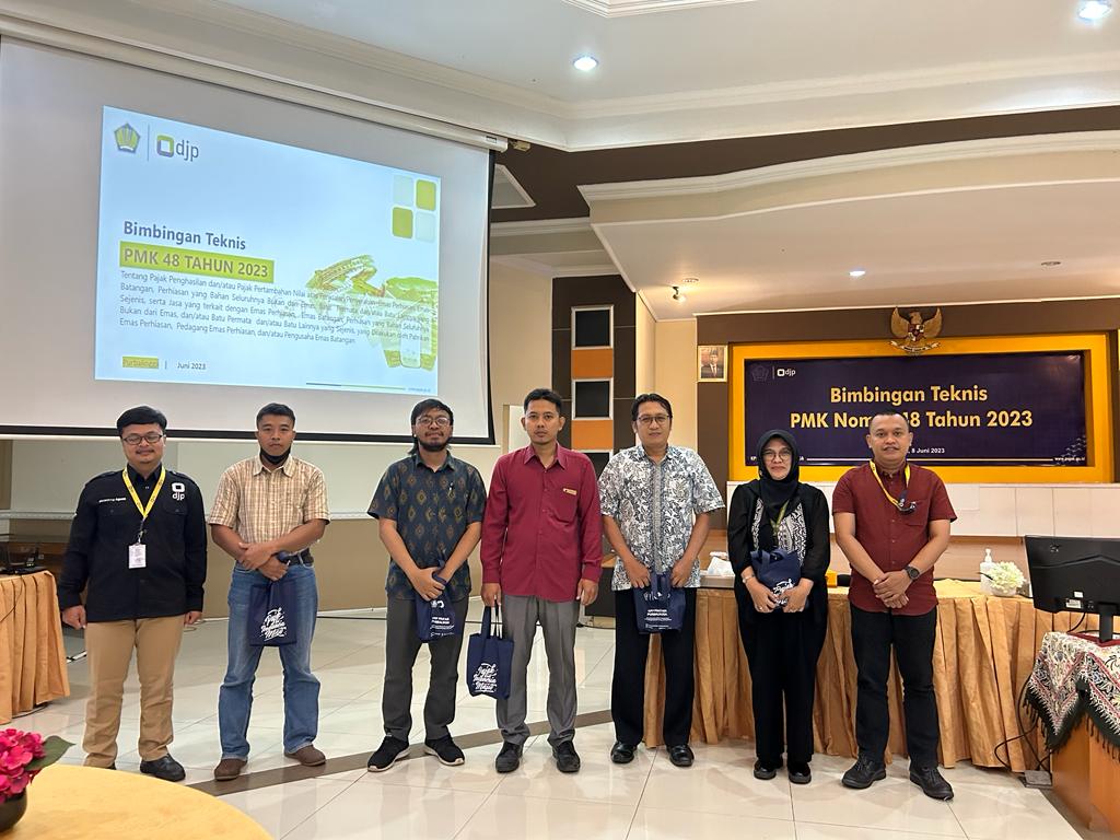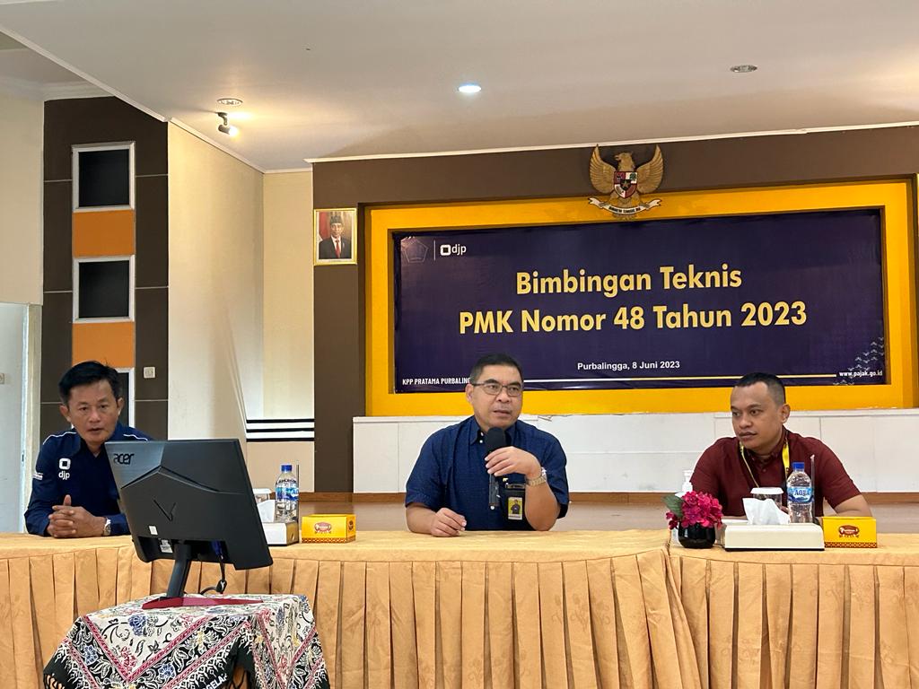 Kantor Pelayanan Pajak (KPP) Pratama Purbalingga menggelar Bimbingan Teknis tentang PMK-48 Tahun 2023 di Aula KPP Pratama Purbalingga dengan peserta Pengusaha Emas di Kabupaten Purbalingga (Kamis, 8/6). Kegiatan dihadiri oleh sejumlah 21 peserta. PMK-48 tahun 2023 ini berisi tentang Pajak Penghasilan dan/atau Pajak Pertambahan Nilai atas Penjualan/Penyerahan Emas Perhiasan, Emas Batangan, Perhiasan yang Bahan Seluruhnya Bukan dari Emas, Batu Permata dan/atau Batu Lainnya yang Sejenis, serta Jasa yang terkait dengan Emas Perhiasan, Emas Batangan, Perhiasan yang Bahan Seluruhnya Bukan dari Emas, dan/atau Batu Permata dan/atau Batu Lainnya yang Sejenis, yang Dilakukan oleh Pabrikan Emas Perhiasan, Pedagang Emas Perhiasan, dan/atau Pengusaha Emas Batangan.