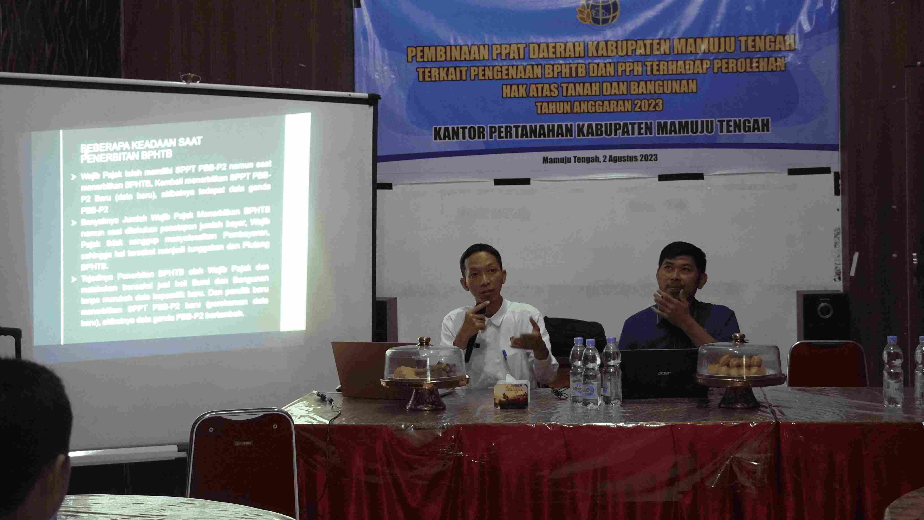 Kantor Pelayanan Pajak (KPP) Pratama Mamuju menyelenggarakan kegiatan Sosialisasi Perpajakan Notaris dan Pejabat Pembuat Akta Tanah (PPAT) dan Penggunaan Aplikasi e-PHTB (Pengalihan Hak atas Tanah dan/atau Bangunan) di Kantor Pertanahan Kabupaten Mamuju Tengah, Sulawesi Barat (Rabu, 2/8).