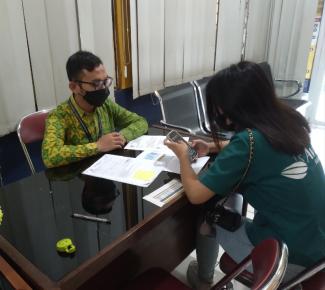 Seorang Sales Promotion Girl (SPG) mengunjungi Kantor Pelayanan, Penyuluhan, dan Konsultasi Perpajakan (KP2KP) Pelabuhan Ratu, Jalan Bhayangkara KM 1, Citepus, Palabuhanratu, Kabupaten Sukabumi (Selasa, 25/7). Ia membawa Bukti Potong Pajak Penghasilan (PPh) Pasal 21 Tidak Final dan menunjukkannya kepada petugas pajak Ahmad Rifai.