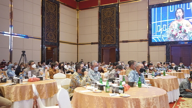 Menteri Keuangan Sri Mulyani Indrawati memaparkan Undang-undang Harmonisasi Peraturan Perpajakan (UU HPP) dalam acara Sosialisasi UU HPP yang diselenggarakan di Hotel Adimulia, Medan, Sumatera Utara (Jumat, 4/2).