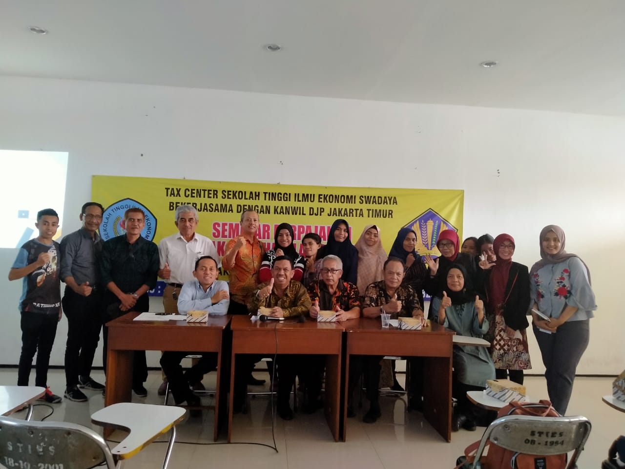 Dalam rangka membangun kesadaran pajak terutama bagi generasi muda sebagai generasi calon-calon pelaku ekonomi masa depan, STIE Swadaya bekerja sama dengan Kantor Wilayah DJP Jakarta Timur menyelenggarakan seminar perpajakan di Aula STIE Swadaya, Jakarta (Rabu, 13/11). Para dosen, mahasiswa, dan karyawan menghadiri seminar ini dengan penuh antusias.
