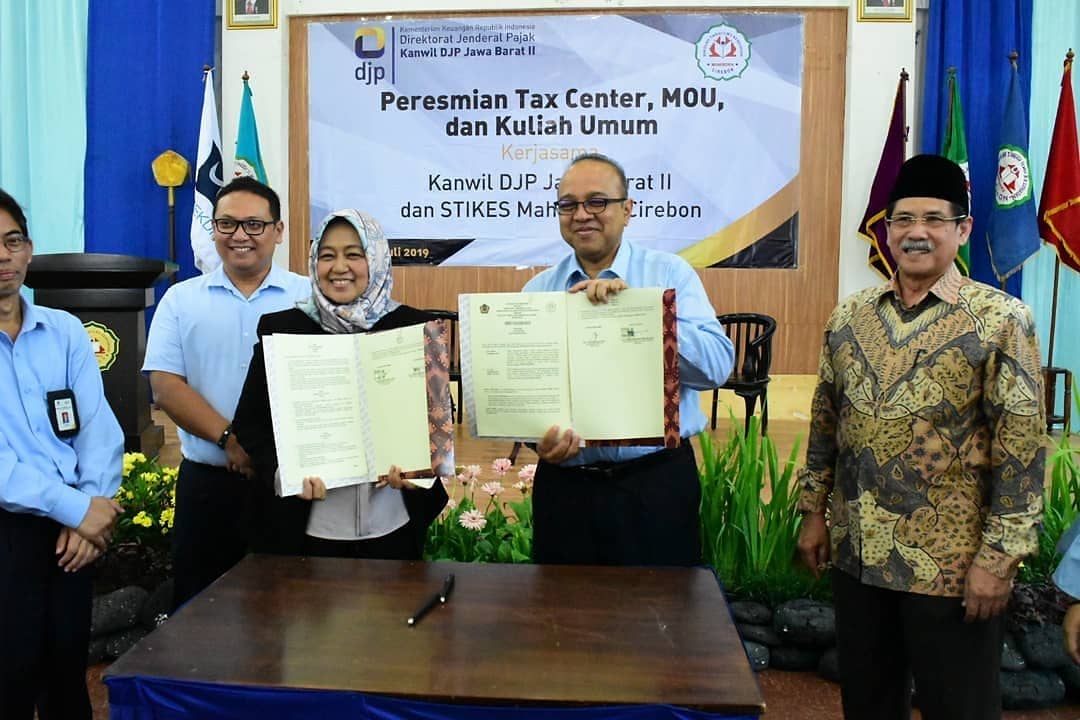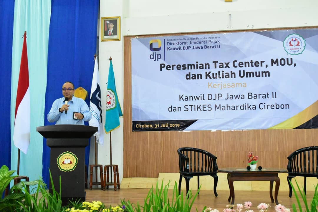Bertempat di Aula Sekolah Tinggi Ilmu Kesehatan (STIKes) Mahardika, Jalan Terusan Sekar Kemuning No.199 Kota Cirebon, Kanwil DJP Jawa Barat II Yoyok Satiotomo meresmikan Tax Center Stikes Mahardika (Rabu, 31/8). Dihadiri Kepala KPP Cirebon Satu Setiadi, Ketua Yayasan Stikes Mahardika Hediana Yusuf, Ketua STIKes Mahardika, Dr. Yani Kamasturyani, SKM., MH.Kes tax center tersebut menjadi tax center ke-9 di lingkungan Kanwil DJP Jawa Barat II.