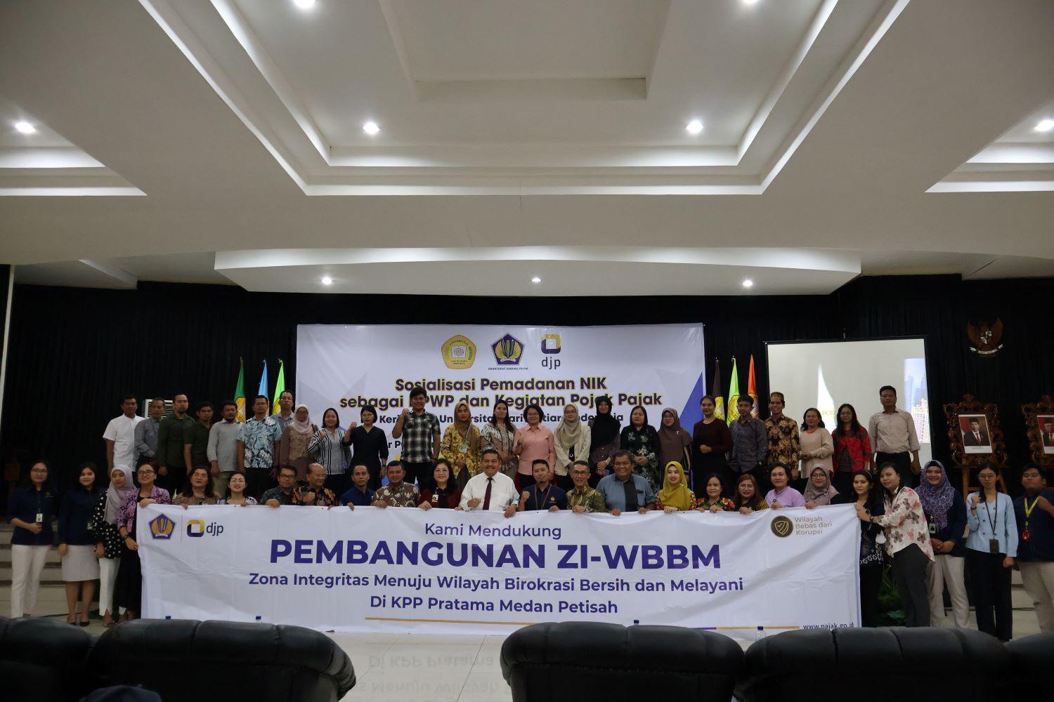 Kantor Pelayanan Pajak Pratama Medan Petisah (KPP) Pratama Medan Petisah memenuhi undangan Rektor Universitas Sari Mutiara Indonesia untuk mengadakan kegiatan sosialisasi pemadanan Nomor Induk Kependudukan (NIK) menjadi Nomor Pokok Wajib Pajak (NPWP) dan pengadaan pojok pajak di Ign Washington Hall Universitas Sari Mutiara Indonesia Jl. Kapten Muslim No. 79, Helvetia Tengah, Kec. Medan Helvetia, Kota Medan. (Rabu, 15/11).