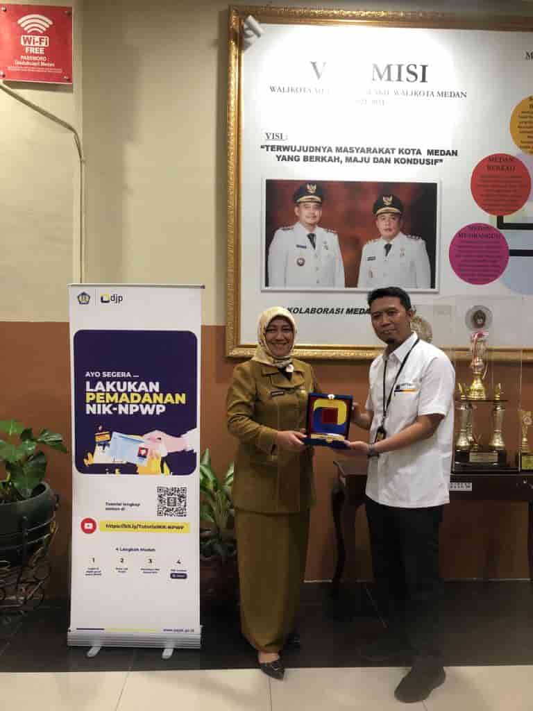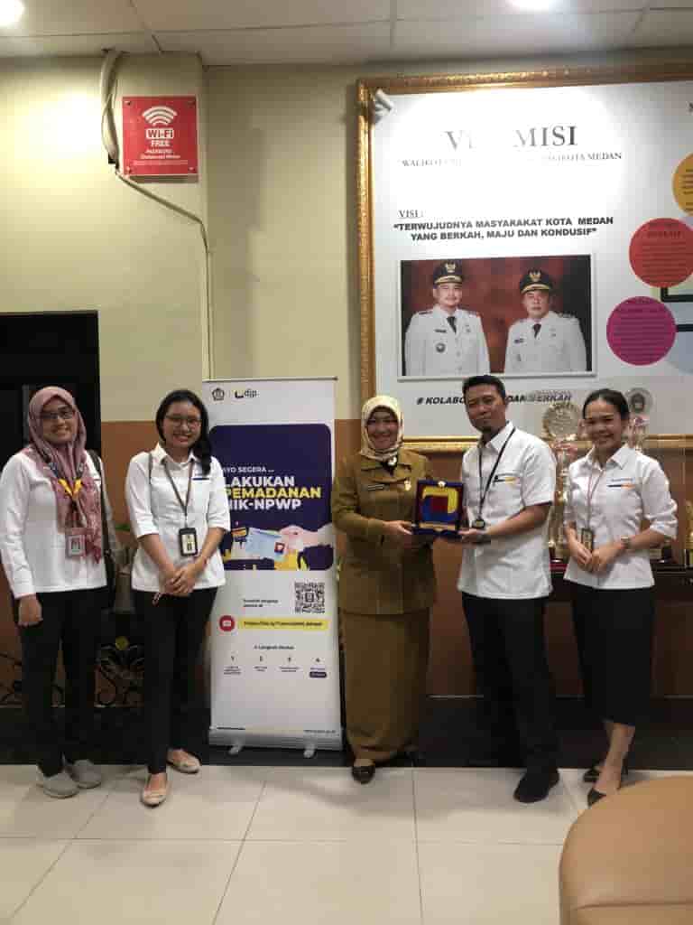 Kantor Pelayanan Pajak (KPP) Pratama Medan Petisah yang diwakili oleh Kepala Seksi Pelayanan dan beberapa Penyuluh Pajak berkoordinasi terkait NIK menjadi NPWP dengan Diskukcapil Kota Medan di Kantor Diskukcapil Kota Medan (Senin, 28/8).
