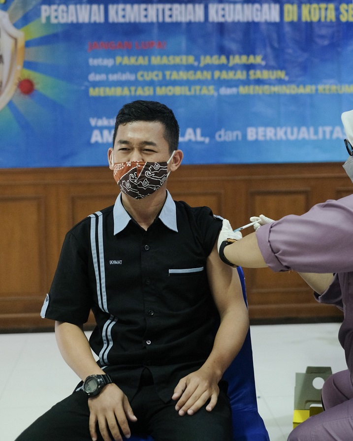 Seluruh pegawai Kanwil DJP Banten mengikuti kegiatan vaksinasi Covid-19 tahap kedua yang diadakan di ruang Aula Kantor Wilayah Direktorat Jendera Perbendaharaan Banten, Kota Serang (Kamis, 1/4).