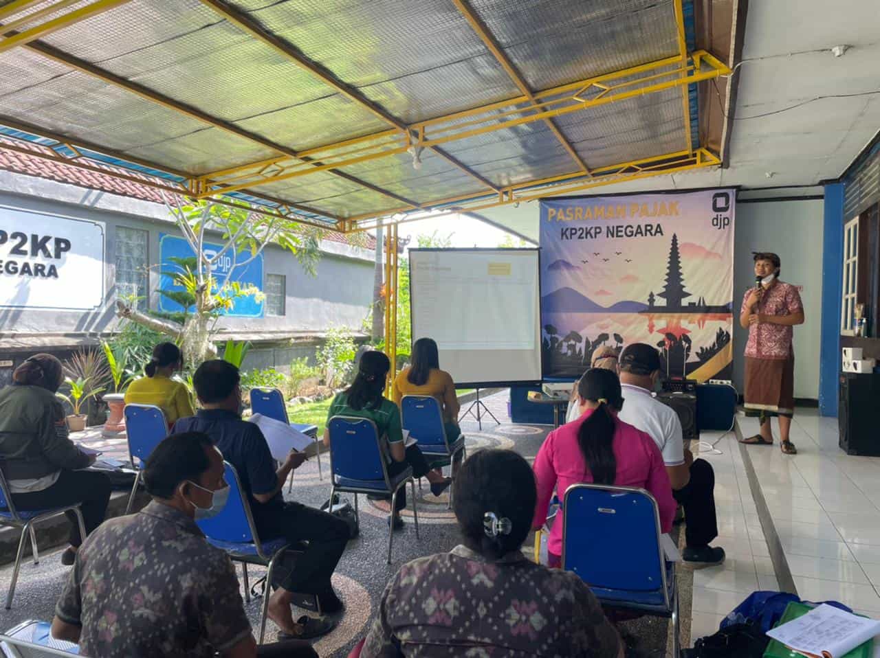 Kantor Pelayanan, Penyuluhan, dan Konsultasi Perpajakan (KP2KP) Negara mengadakan edukasi perpajakan tatap muka bertempat di Taman Belakang KP2KP Negara (Kamis, 17/6). Edukasi tatap muka yang dilakukan di masa pandemi ini tetap menerapkan protokol kesehatan sesuai ketentuan yang berlaku seperti memakai masker, menjaga jarak, dan mencuci tangan.