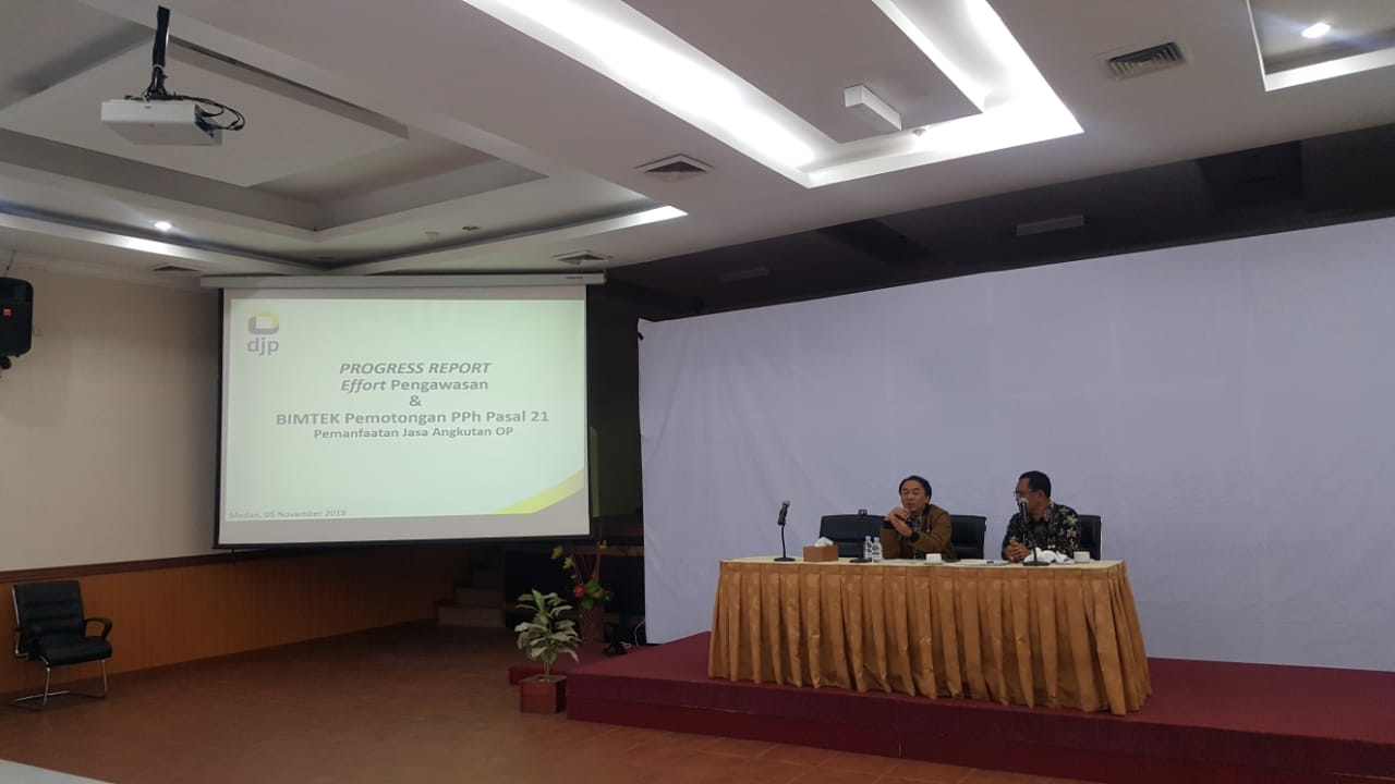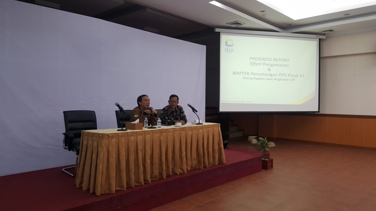 Kantor Wilayah (Kanwil) Direktorat Jenderal Pajak (DJP) Sumatera Utara I mengadakan Rapat Progress Report Effort Pengawasan dan Bimbingan Teknis Pemotongan PPh Pasal 21 atas Pemanfaatan Jasa Angkutan yang Dimiliki Orang Pribadi bertempat di Aula Kantor Lantai 8, Pematang Siantar (Selasa, 5/11).