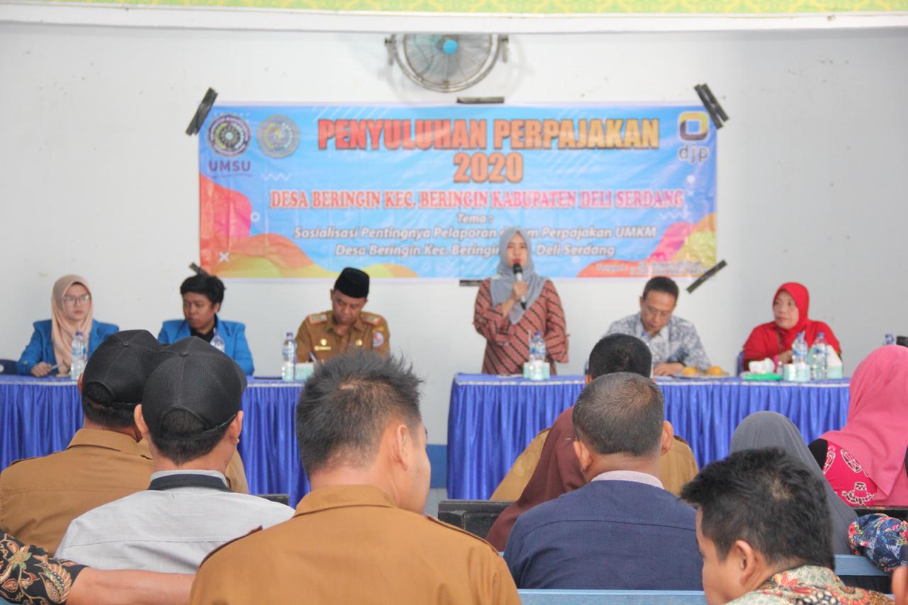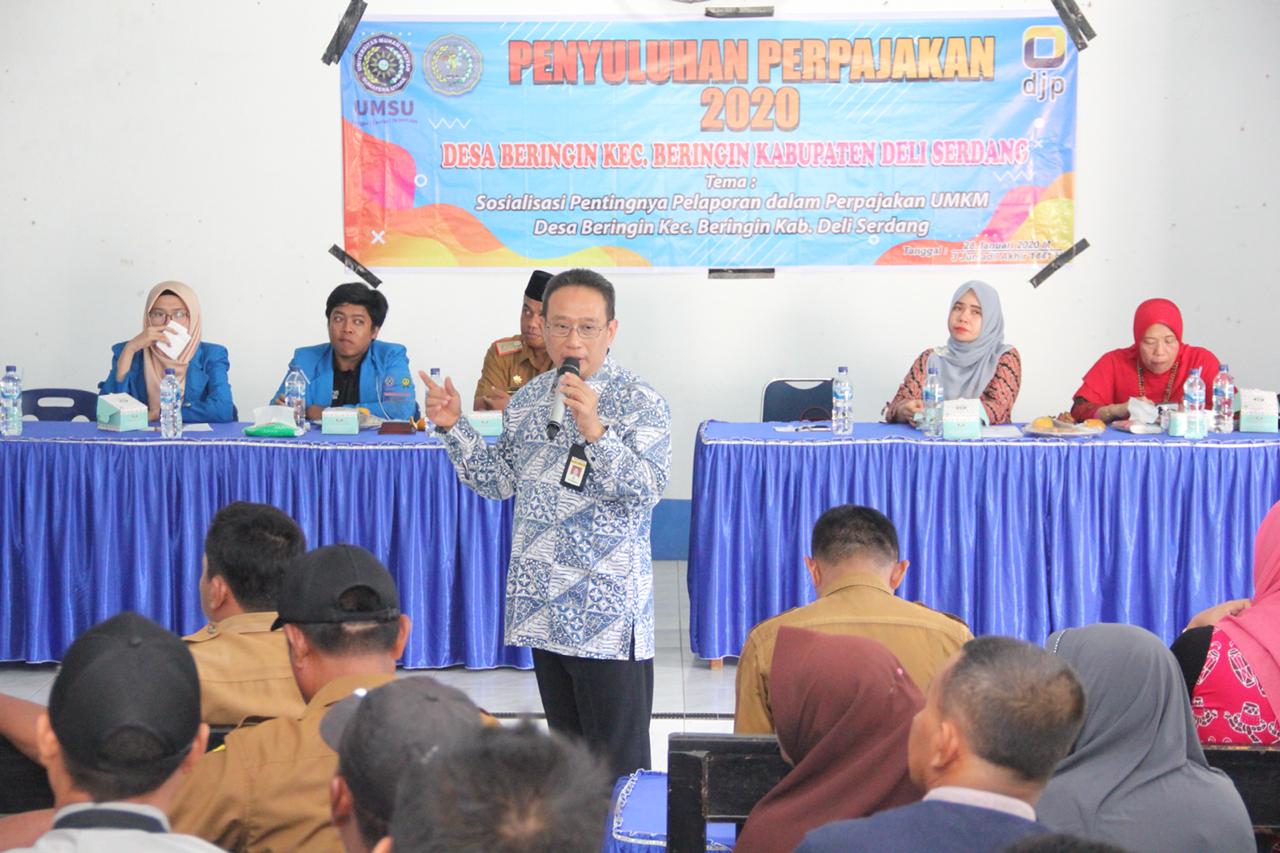 Kantor Wilayah (Kanwil) Direktorat Jenderal Pajak (DJP) Sumatera Utara I bekerja sama dengan Universitas Muhammadiyah Sumatera Utara (UMSU) melaksanakan penyuluhan perpajakan di Desa Beringin, Kecamatan Beringin, Kabupaten Deli Serdang (Selasa, 28/1).