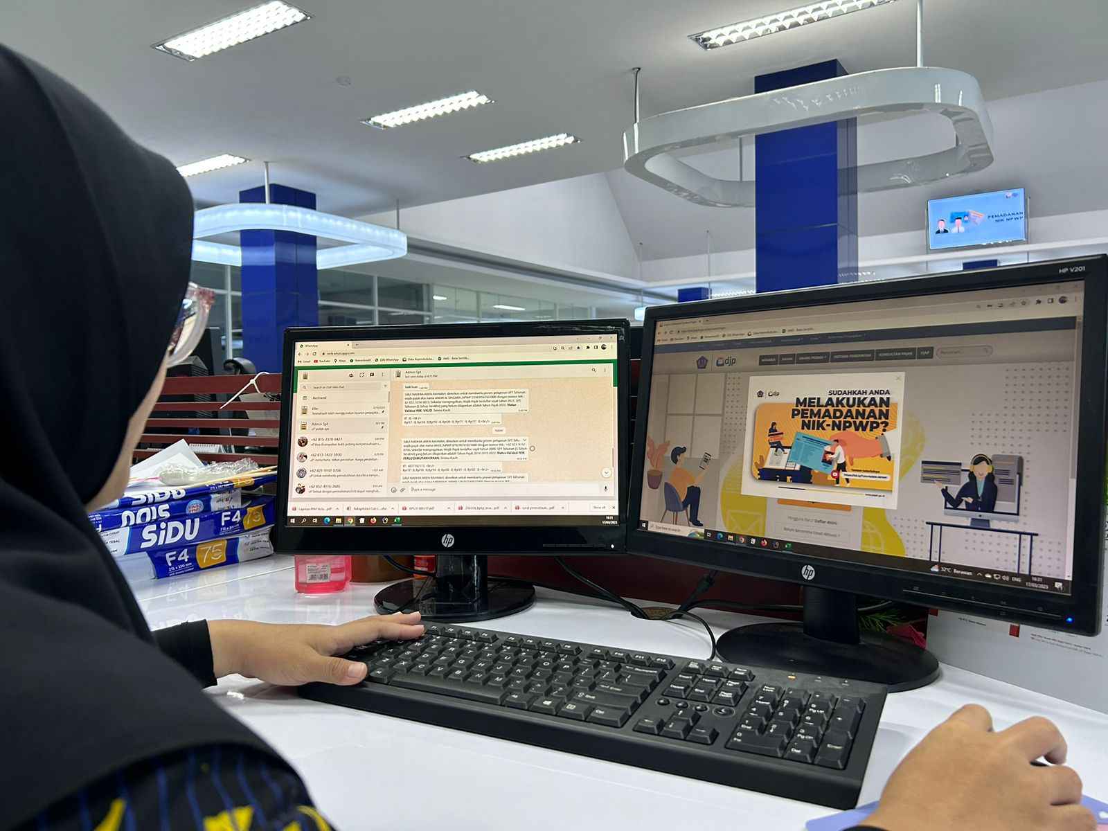 Kantor Pelayanan Pajak (KPP) Pratama Palu memberikan layanan tambahan secara daring kepada wajib pajak yang akan melakukan pelaporan Surat Pemberitahuan (SPT) Tahunan Wajib Pajak Orang Pribadi di Tempat Pelayanan Terpadu (TPT) maupun helpdesk KPP Pratama Palu, Kota Palu, Sulawesi Tengah (Kamis, 16/3).